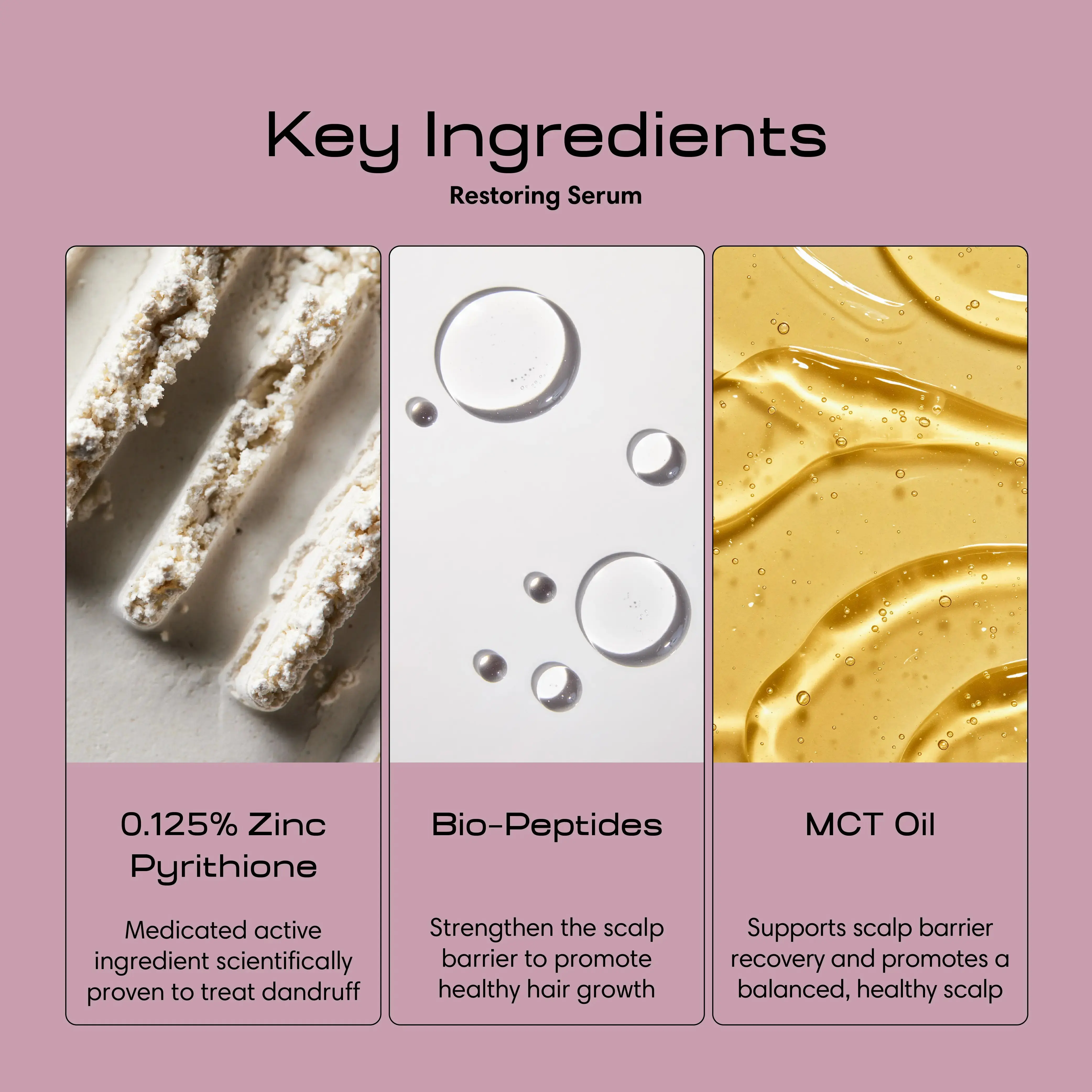 The Balancing Shampoo treats dandruff with clinically-proven 1% zinc pyrithione while gently cleansing, removing excess oil, and rebalancing the scalp without stripping hair or color. Follow with the Nourishing Conditioner to restore moisture, smooth frizz, and strengthen strands while supporting a healthier, more resilient scalp. To keep flakes and itching in check between washes, the Restoring Serum delivers targeted, leave-on anti-dandruff relief that helps maintain long-term scalp balance.