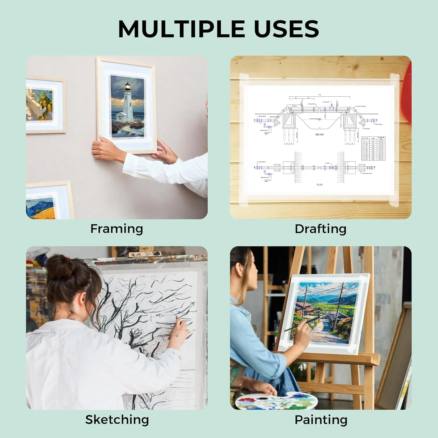 ·Gentle Hold: The tape adheres securely to watercolor paper border without slipping, allowing for easy removal and repositioning. It leaves no residue, minimizes paper damage, and supports flexible adjustments