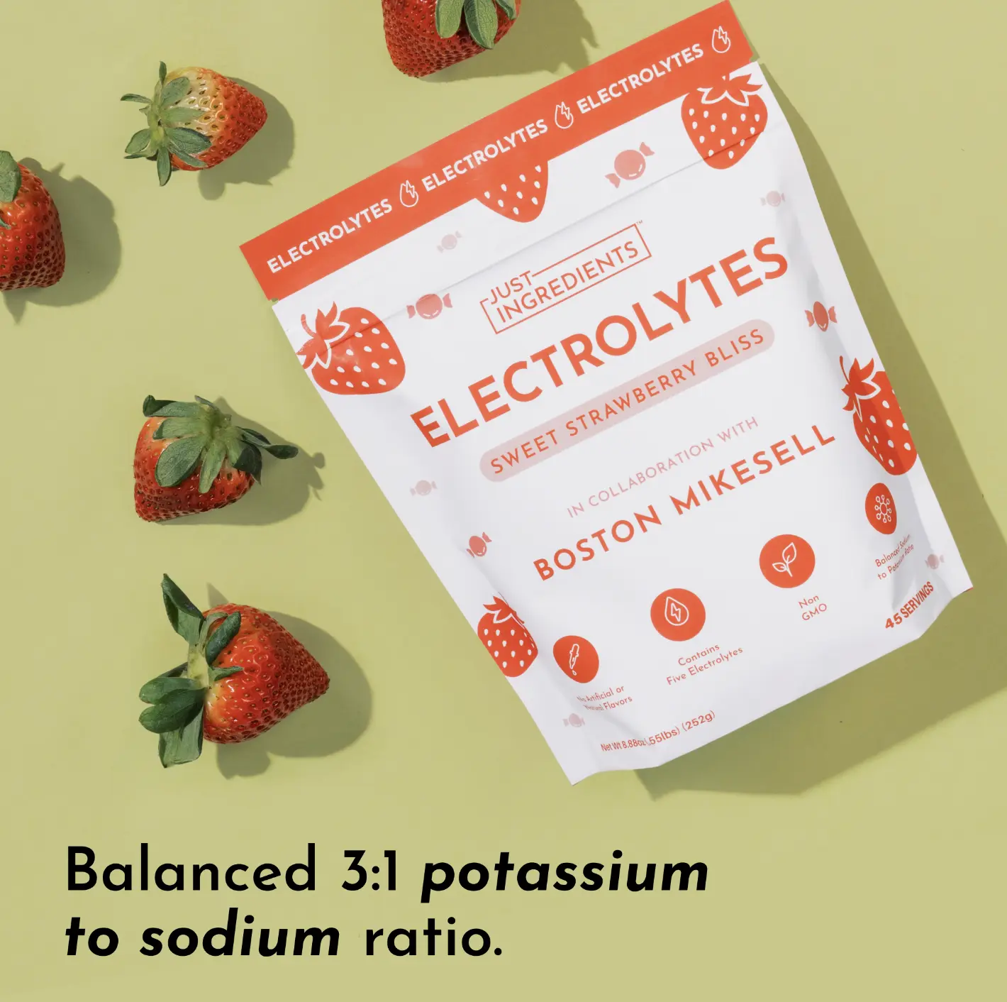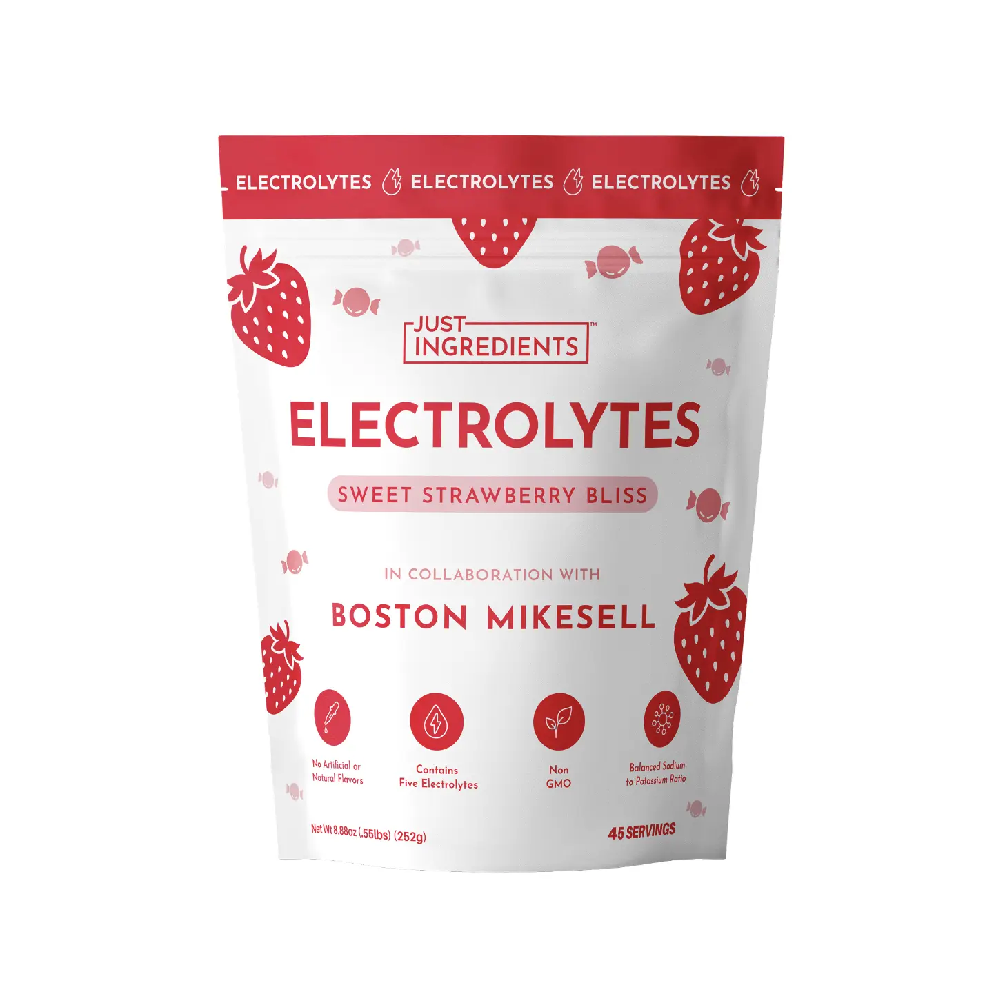 5. Just Ingredients Boston's Sweet Strawberry Bliss Electrolytes Drink Mix | 45 Servings | Organic Coconut Water & 5 Key Electrolytes | Supports Hydration, Electrolyte Balance & Muscle Recovery* | No Sugar Added