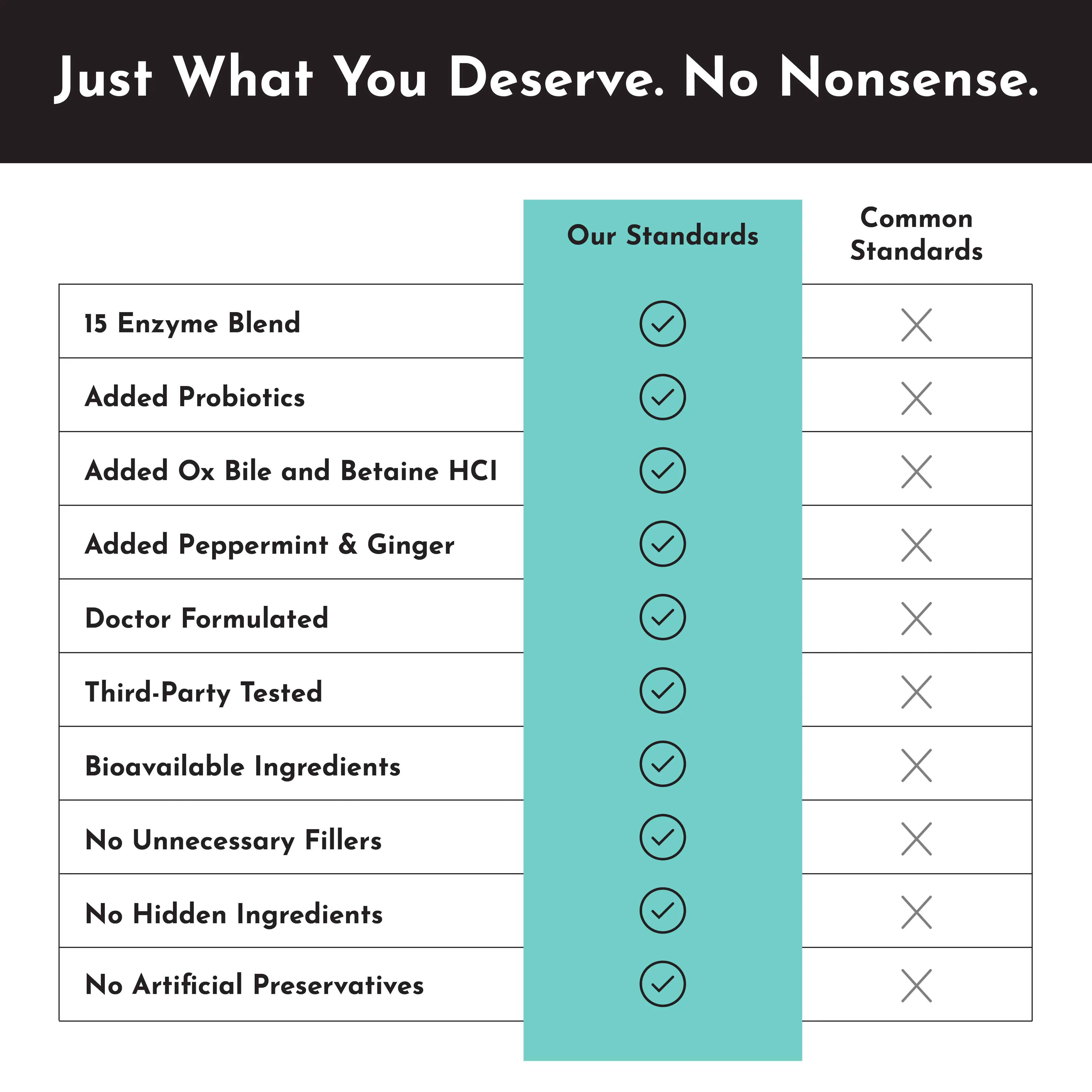 ·15 Enzyme Blend: Breaks down proteins, fats, carbohydrates, and fiber.