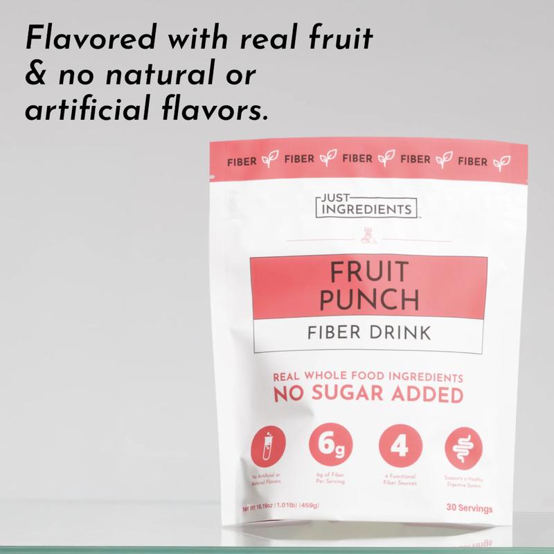 Just Ingredients Fruit Punch Fiber Drink - 30 Servings, 6g Fiber, No Added Sugar, Supports Regularity & Digestive Health