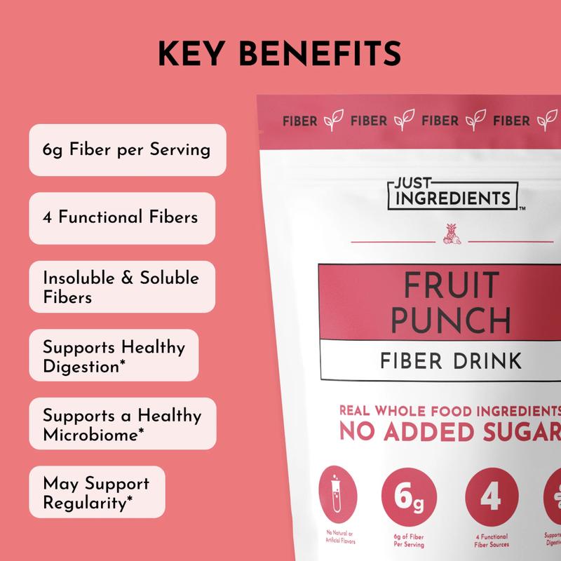 5. Just Ingredients Fruit Punch Fiber Drink - 30 Servings, 6g Fiber, No Added Sugar, Supports Regularity & Digestive Health