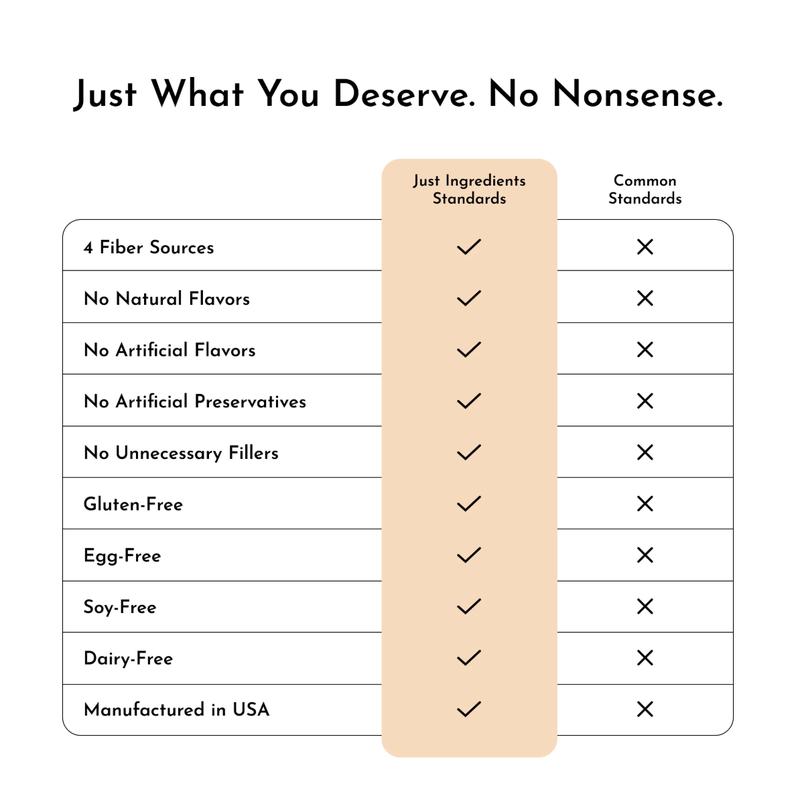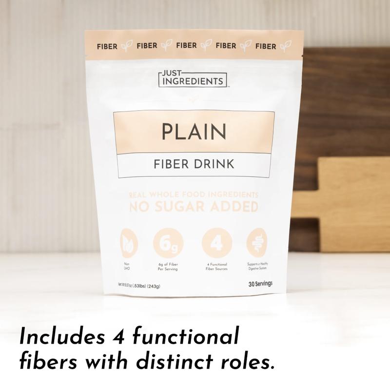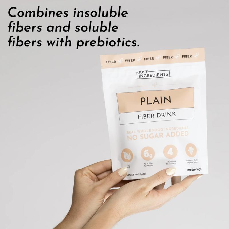 Support regularity with Just Ingredients Plain Fiber. With only four ingredients, this formula blends soluble and insoluble fibers, FOS, inulin, hydrolyzed guar fiber, and organic apple fiber, to support healthy digestion, nourish beneficial gut bacteria, and promote normal digestive function.* This real-food fiber powder helps maintain a balanced gut microbiome, while helping you reach your daily fiber intake.*