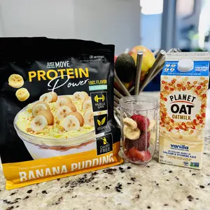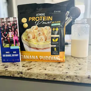 I love the banana pudding favor protein powder it’s very smooth in texture and taste great I mixed my shake with frozen strawberries 🍓