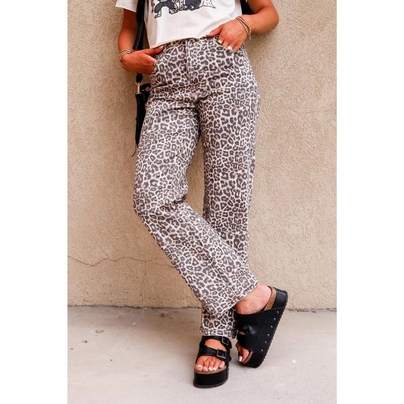 These jeans are serving serious style with a wild side! πŸ† Featuring an ultra high-rise waist and a straight leg fit, they’re both flattering and bold. The all-over washed leopard print brings that standout vibe, while the button and zipper closure keeps it classic. Made from a comfy blend of 98% cotton and 2% spandexβ€”aka just the right amount of stretch for all-day wear!