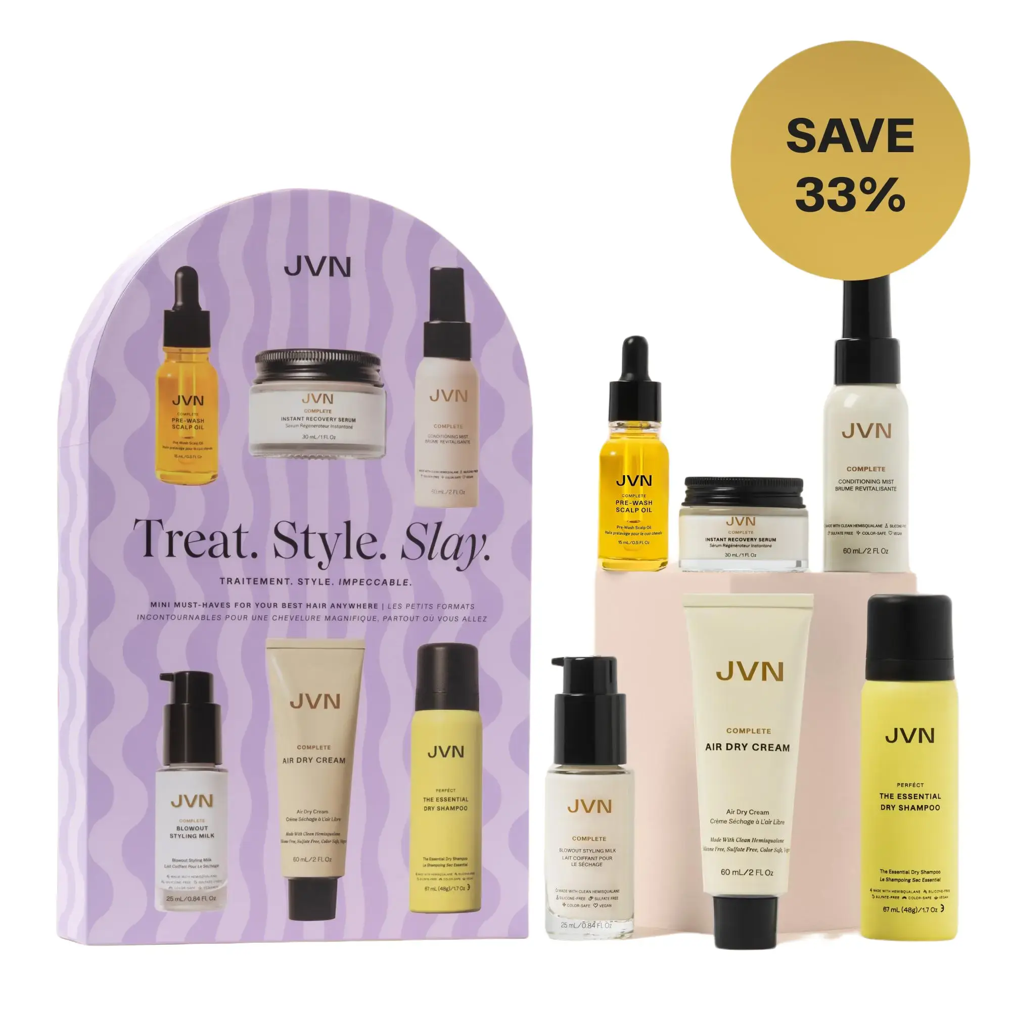 Ready to give your hair the royal treatment it deserves? Whether you’re a styling pro or a "wash and go" person, the Treat Style Slay Set is your ultimate toolkit. We’ve packed our 6 most-loved bestsellers into one travel-ready kit so you can treat, style, and—you guessed it—slay, anywhere.