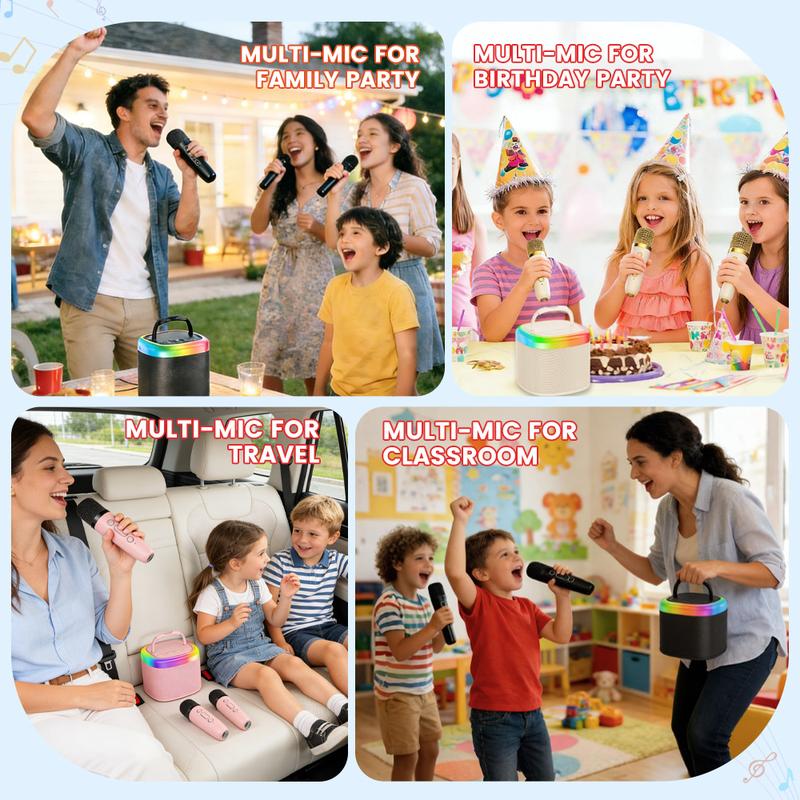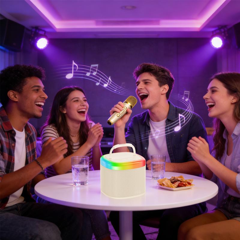 Ready to turn any gathering into a karaoke party? The JYX Mini Karaoke Bluetooth Speaker packs powerful bass and crystal-clear sound into a portable, stylish system perfect for home, outdoor events, or just jamming solo. Its rechargeable battery lasts 6-8 hours, so you can keep the music alive all day or night. Connect effortlessly via Bluetooth 5.3, AUX, TF card, or USB to your phone, tablet, or laptop — no tech headaches here! The system includes one or two premium wireless microphones, plus fun voice modulation options like monster or baby voice to keep things lively. Colorful LED lights add a festive flair that amps up the vibe wherever you go. Whether it’s a birthday bash, family hangout, or casual sing-along, this karaoke machine makes it easy and fun to share your favorite tunes. The durable leather handle means you can take the party anywhere, and it even makes a fantastic gift for music lovers of all ages. Unbox the joy and start singing your heart out today!