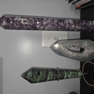 Received my order today. My tall amethyst tower which had glue on the tip to"protect" it fun breaking was broken under the glue. The other two pieces are great.