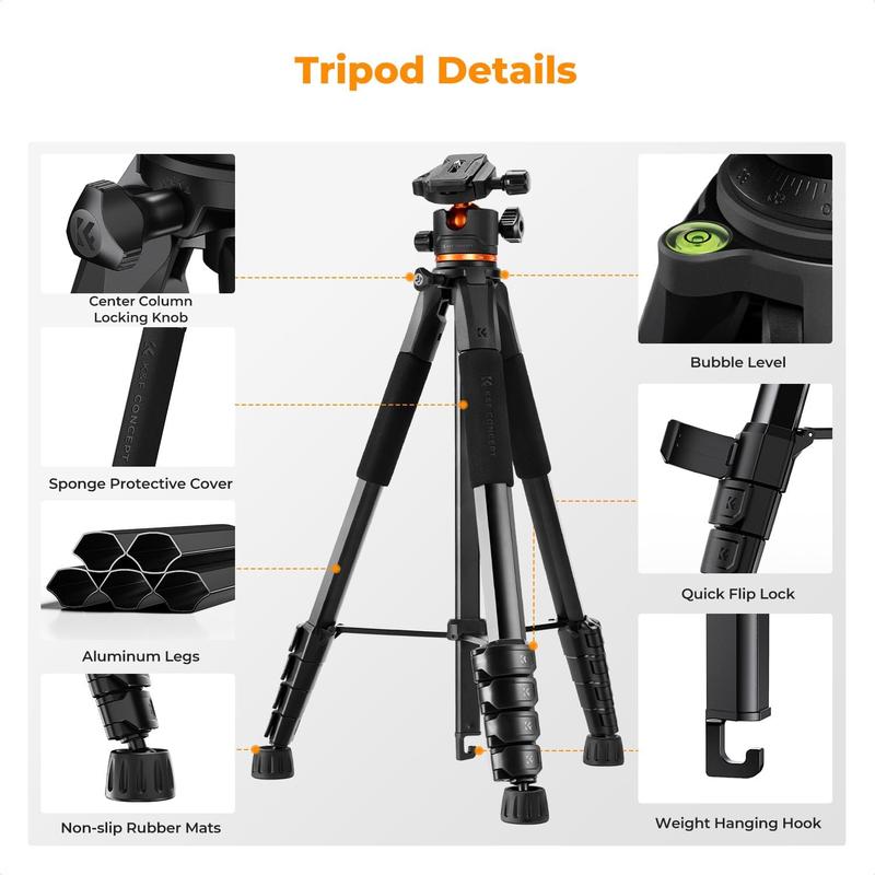·Innovative Pentagonal Tube Design – Engineered for stability and portability, this lightweight (1.3 kg / 2.87 lbs) tripod features a unique pentagonal-shaped tube for enhanced durability and easy folding. With a compact 50 cm (approx. 19.7 inches) folded size, it’s effortless to carry, making it ideal for travel, outdoor shoots, and professional use, even on rugged terrains.