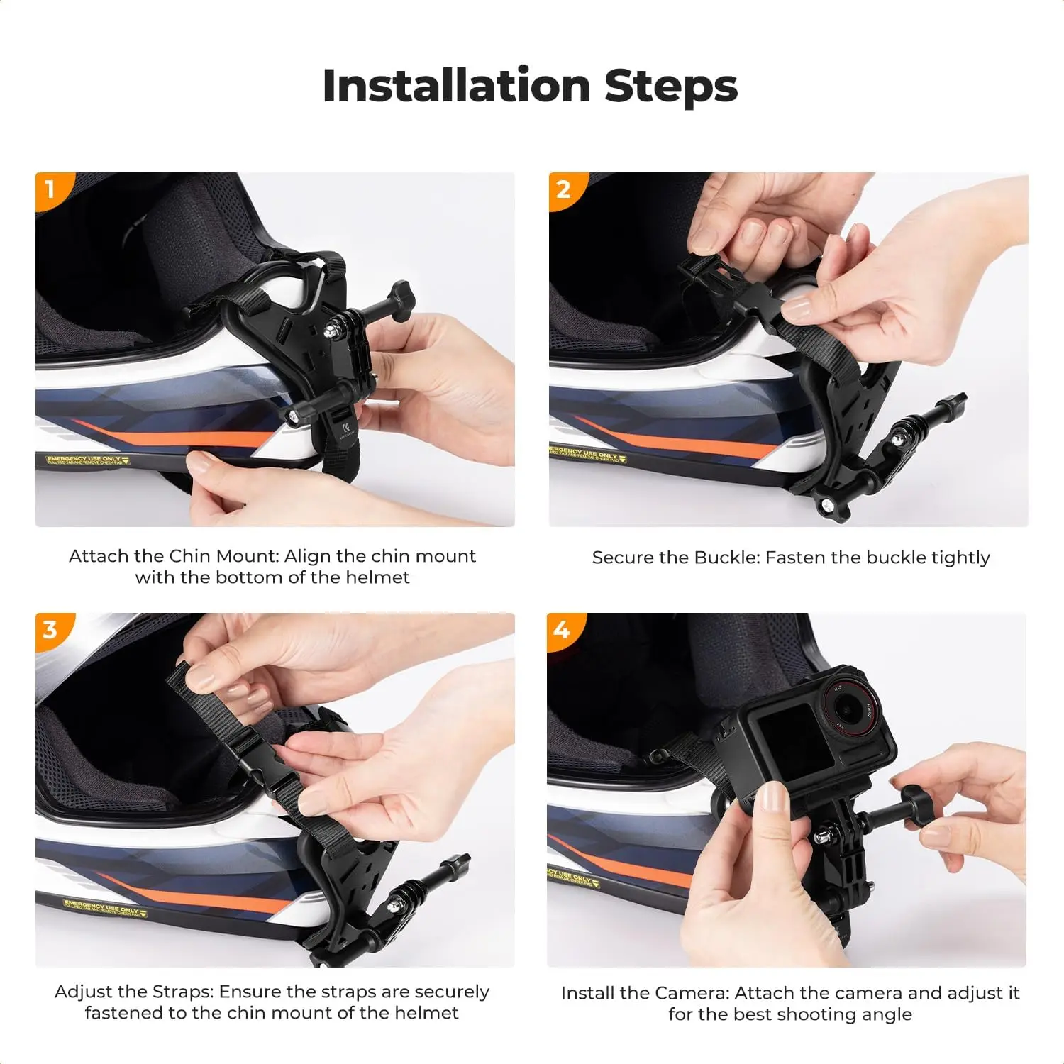·Compatible with Full Face Helmet: Compatible with motorcycle, mountain bike, dirt bike, slopestyle, motocross, snowmobile helmets Shock-proof and anti-slip design: Premium ABS material Y-shaped base, styling to fit the helmet chin and avoid scratching the helmet, locked with dual buckle to ensure that it does not loosen and fall off during use, ensuring stable and clear shooting