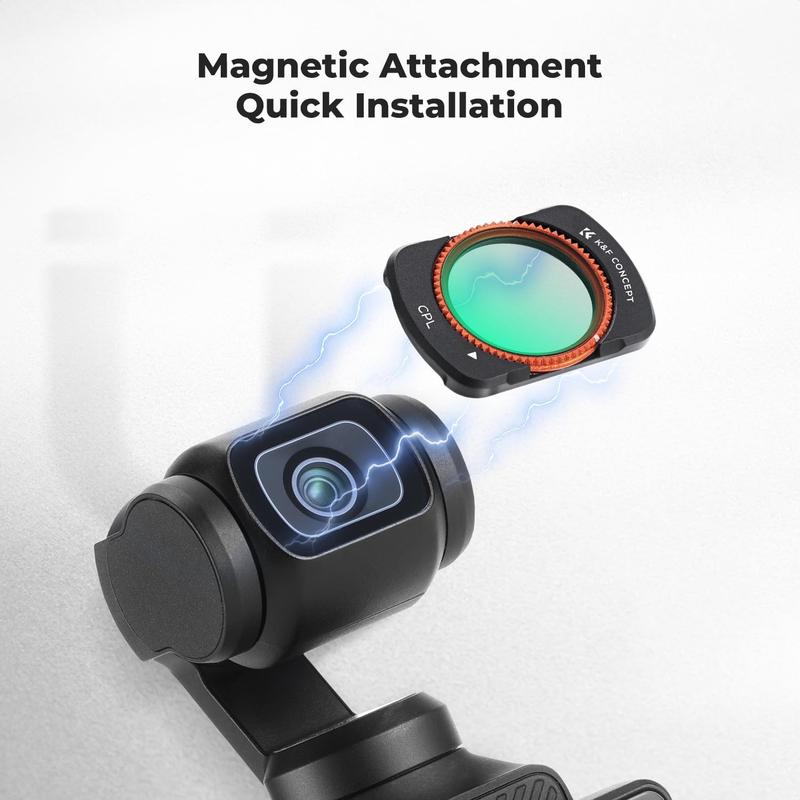 ·[Designed for Osmo Pocket 3]: This K-Series CPL ND filter kit from K&F Concept is compatible with DJI Osmo Pocket 3 Creator Combo Accessories, made of HD optical glass and aluminum alloy, features ultra-thin does not affect gimbal shutdown, adopt instant and magnetic attachment design, easy install and switch, never miss any wonderful moments of family gathering, party, citywalk, travel