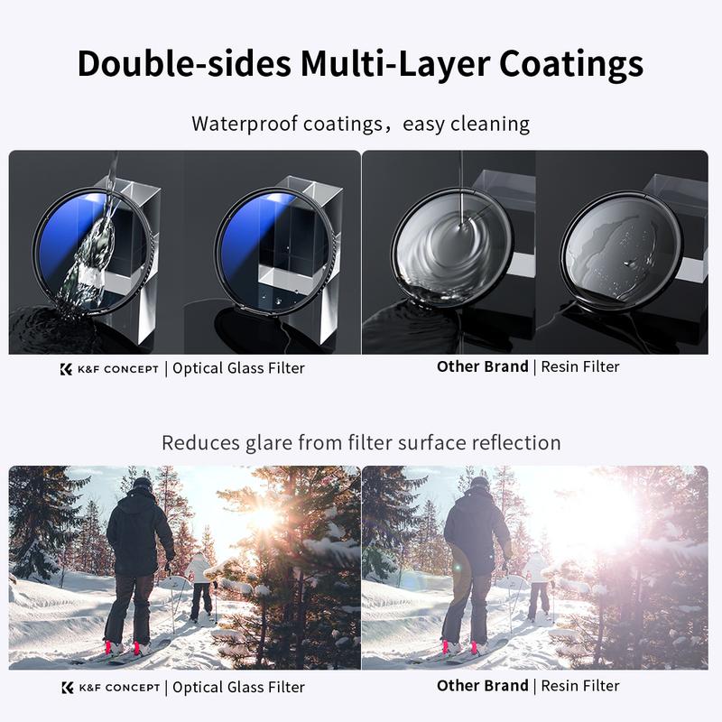 ·【Exceptional Optical Glass】The K&F Concept lens filters are meticulously crafted from top-tier optical glass, featuring 18 layers of nanometer coatings. These coatings excel at reducing reflections, preserving the genuine colors and remarkable quality of your images. With a CNC frame design that enhances friction, installing and removing filters is swift and hassle-free.
