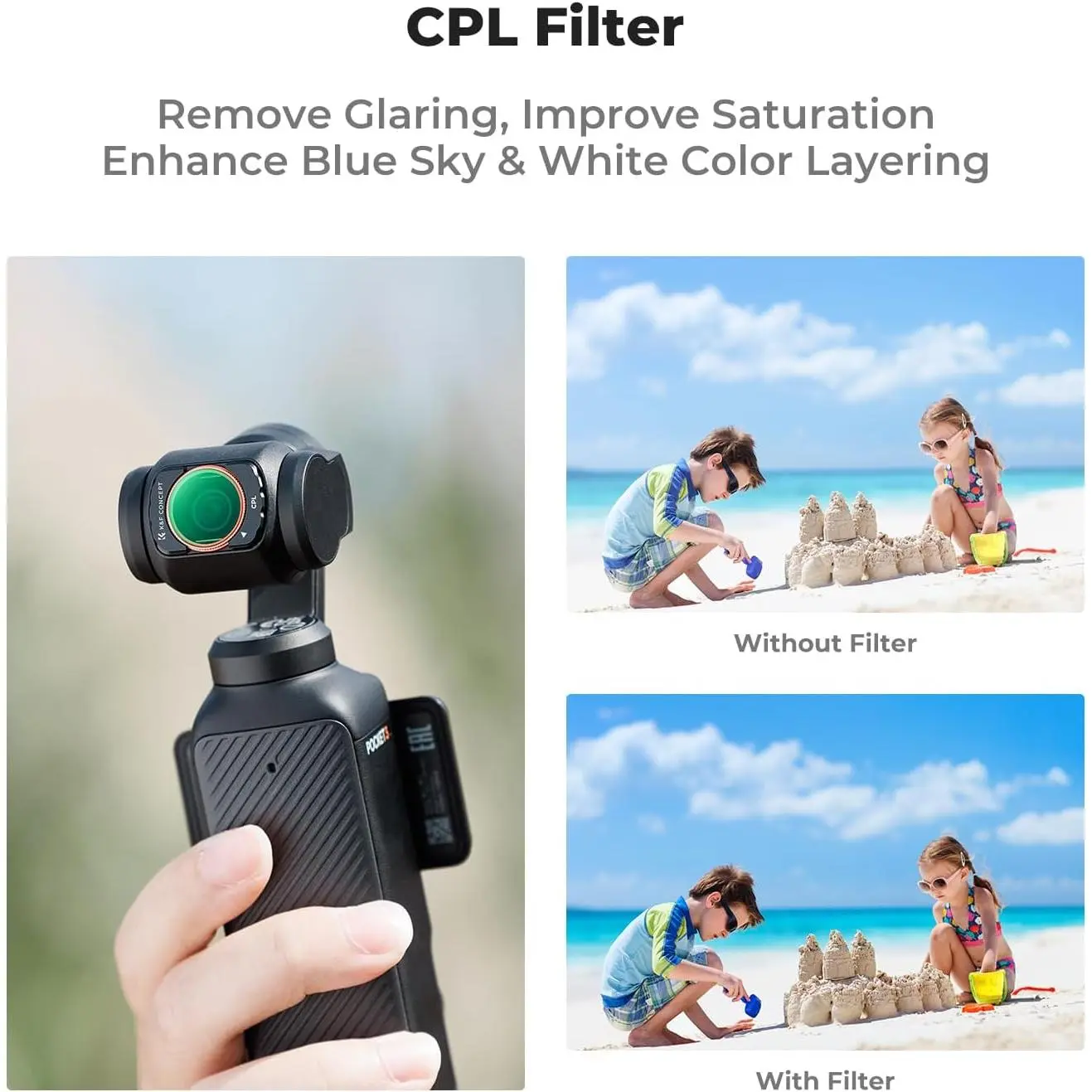 K&F CONCEPT Magnetic 4 Pack ND & CPL Filter Kit Compatible with DJI OSMO Pocket 3, CPL ND16 ND64 ND256 Polarizing Neutral Density Filters, Multi-Coated/HD Optical Glass/Gimbal Compatible