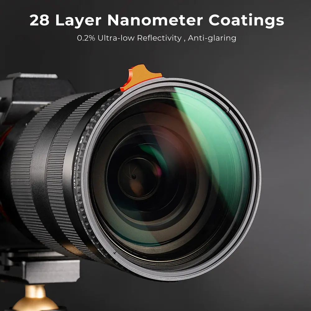 【Import Optical Glass】This ND filter is made by importing Japanese AGC optical glass, a total of 28 multi-layer coatings, effectivly reducing reflection from the filter itself and glarings, ensuring high-quality image.