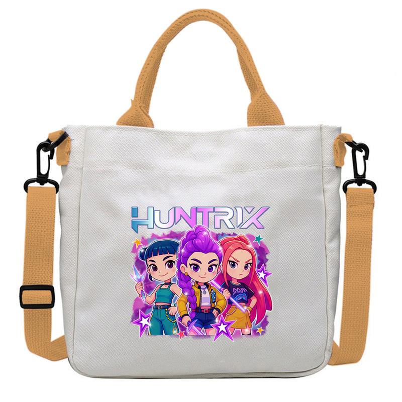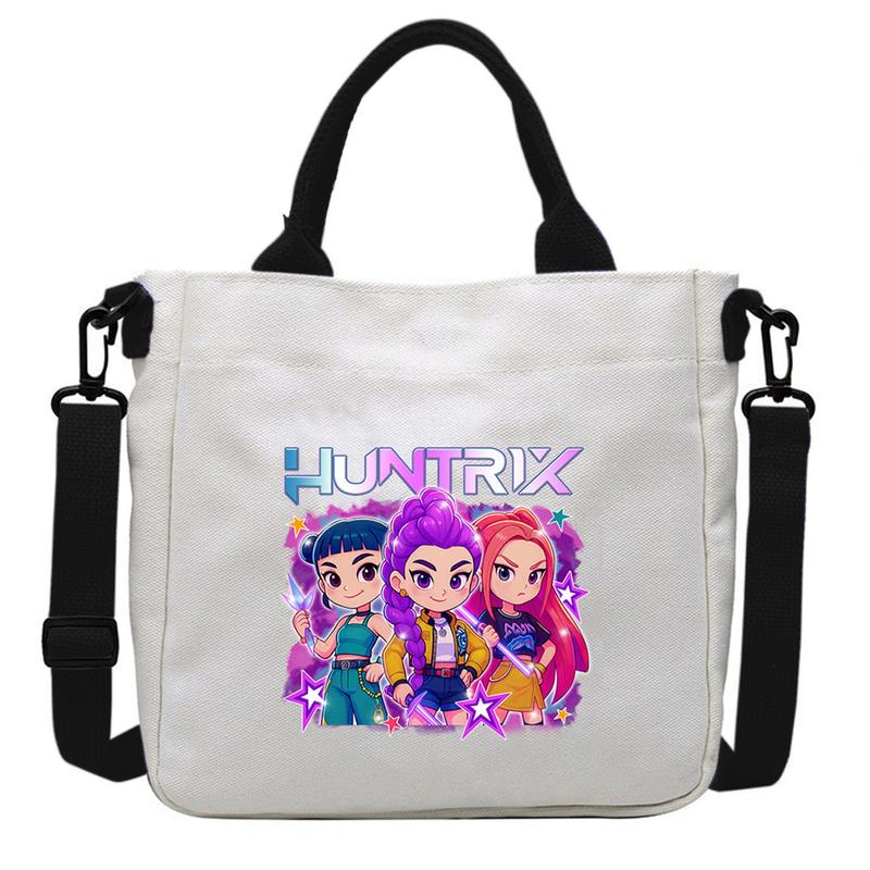 This shoulder bag features a charming print of Rumi, Mira, and Zoey. The design is perfect for fans of the K-Pop Demon Hunter series. The bag includes a large capacity, making it ideal for carrying essentials. It's a great gift option for anyone who loves the characters.