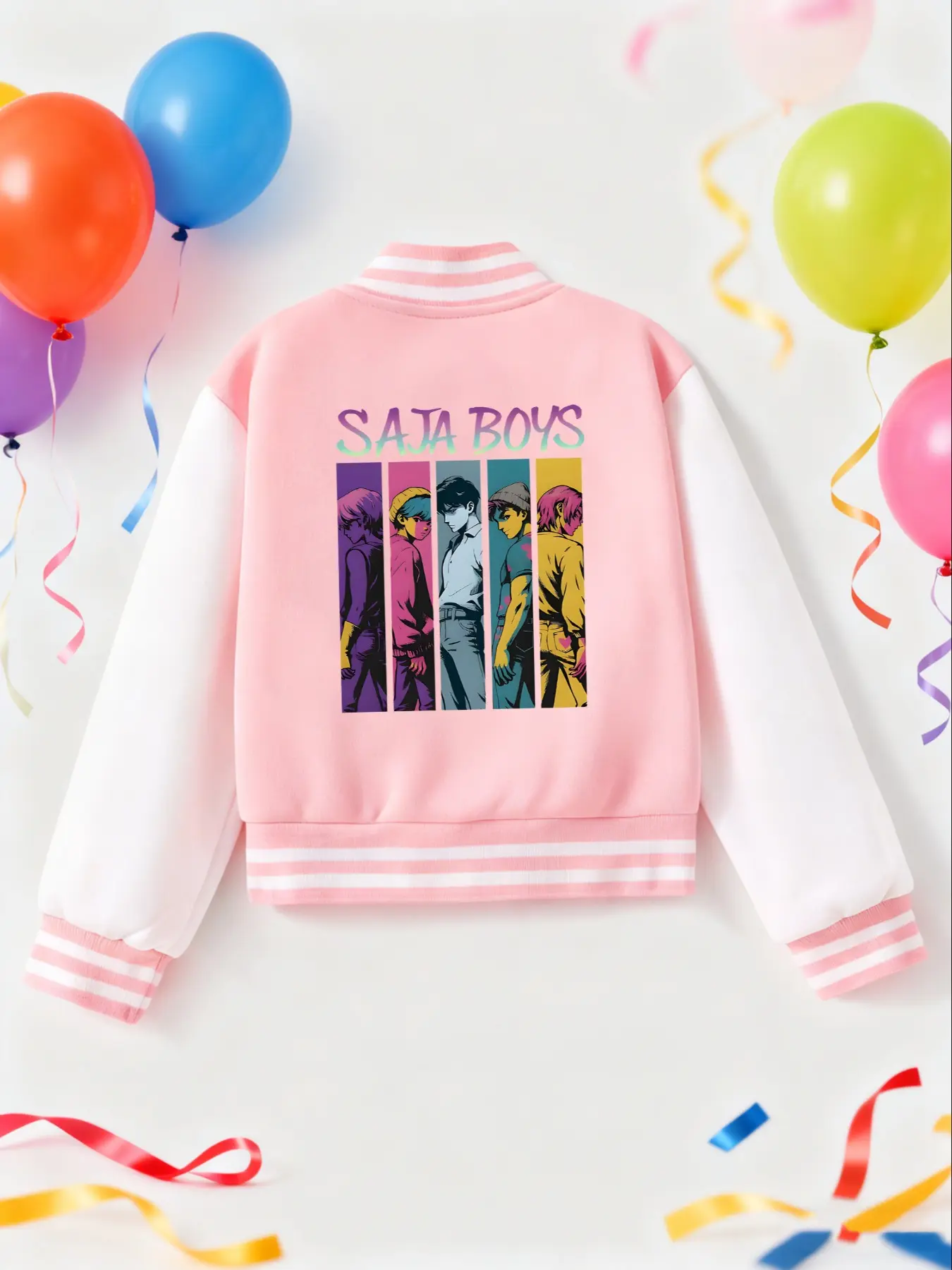 5. K-Pop Hunter Boy/girl Short Baseball Jacket, Casual Sports School Uniform, Cartoon Pattern Design, Elastic Fabric, Kids Outdoor Indoor Activities