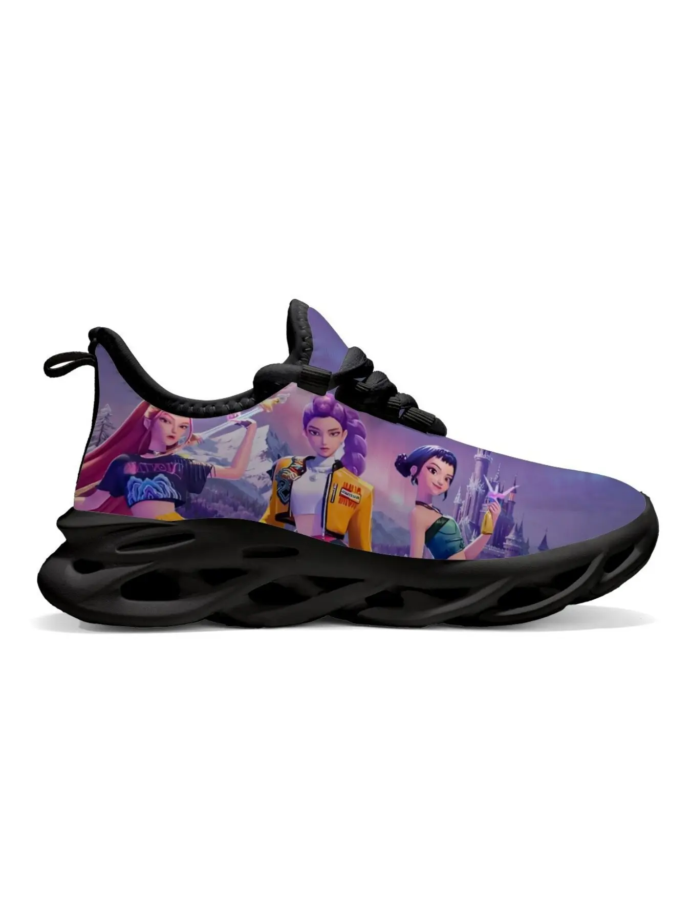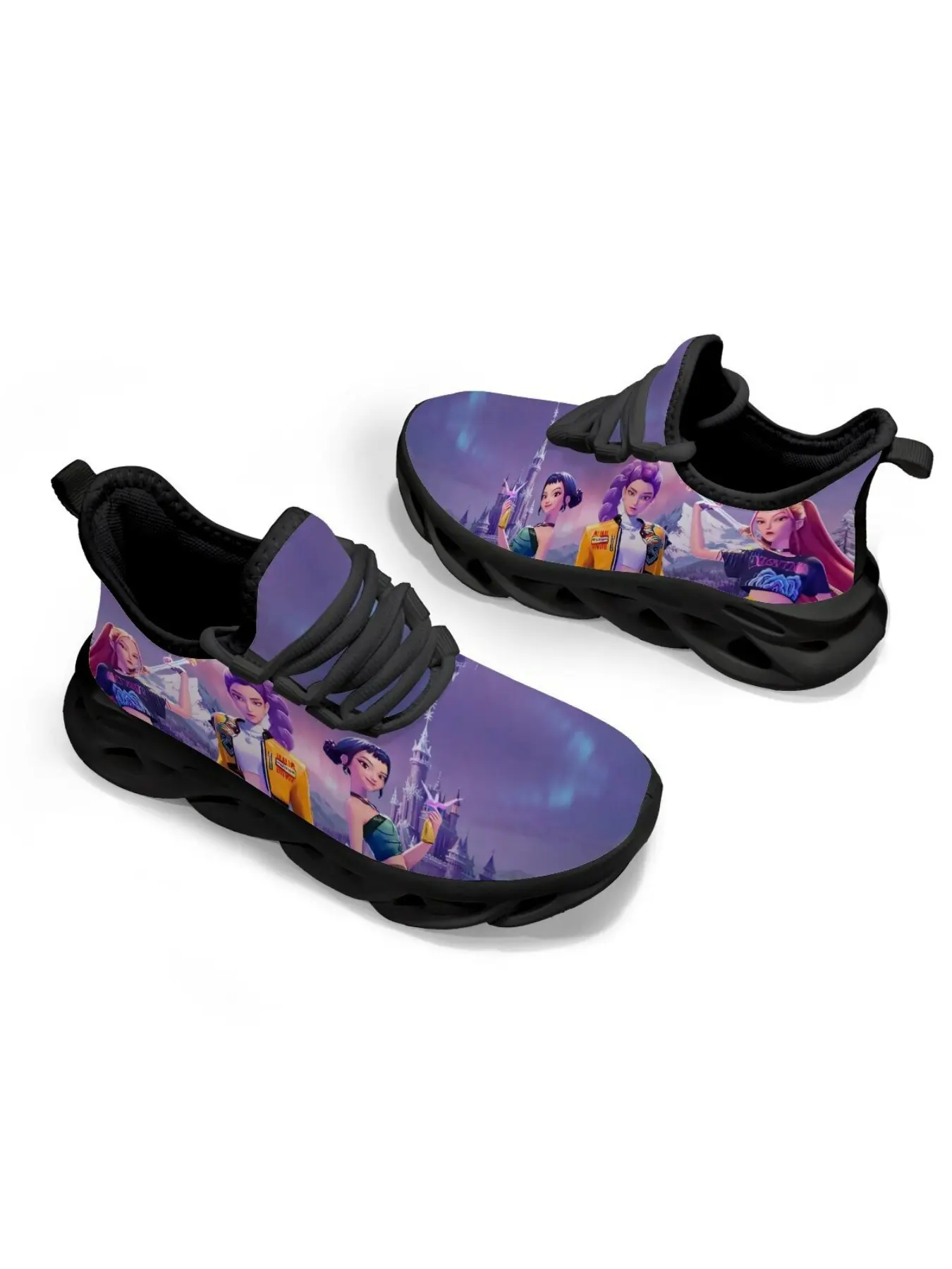 K-Pop Hunter Girl Group Castle Fantasy Illustration Kids Casual Sports Training Shoes, Breathable Textile Upper, Unisex, All Seasons #footwear #onlinecuteshoes #shoecarnival #unisexshoes #shoecollab #kidssneakers #shoesfashion #shoescollection #womenfootwear #kidsboots