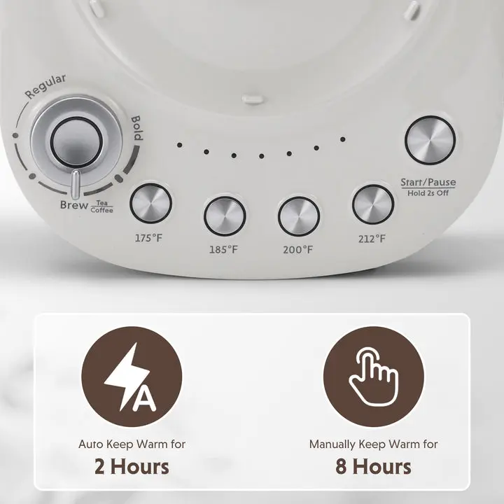 ·Keep Warm - Enjoy the convenience of our 2-hour automatic keep-warm function at 158℉ after brewing. For longer warmth, manually keep it warm for up to 8 hours.