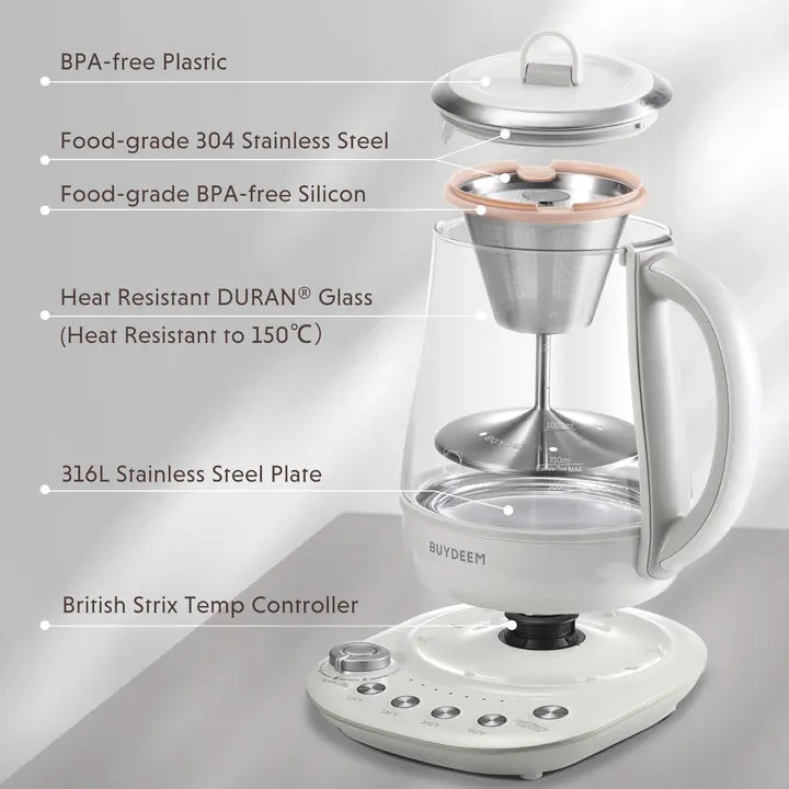 ·6 Brew Strength Selection - Designed with 6 strength settings from light to extra bold, place the tea/coffee in the infuser, add water to the outer pot, directly turn the knob to choose your brew strength WITHOUT the temperature settings and press “Start” button.