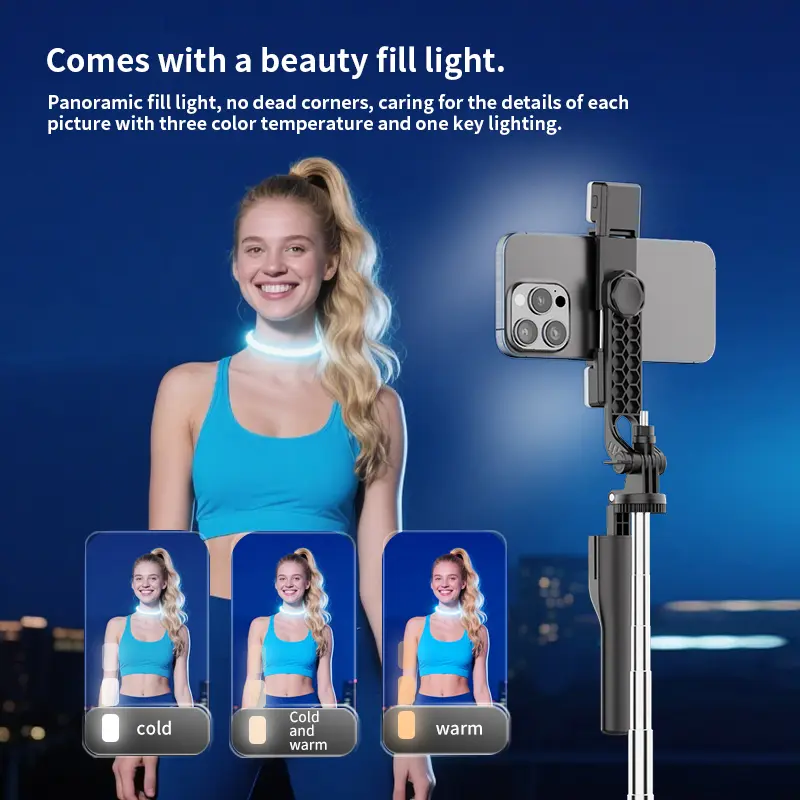 ·Panoramic Fill Light: Offers three lighting modes—cool, warm, and mixed light—to enhance skin tones and improve clarity in low-light environments.