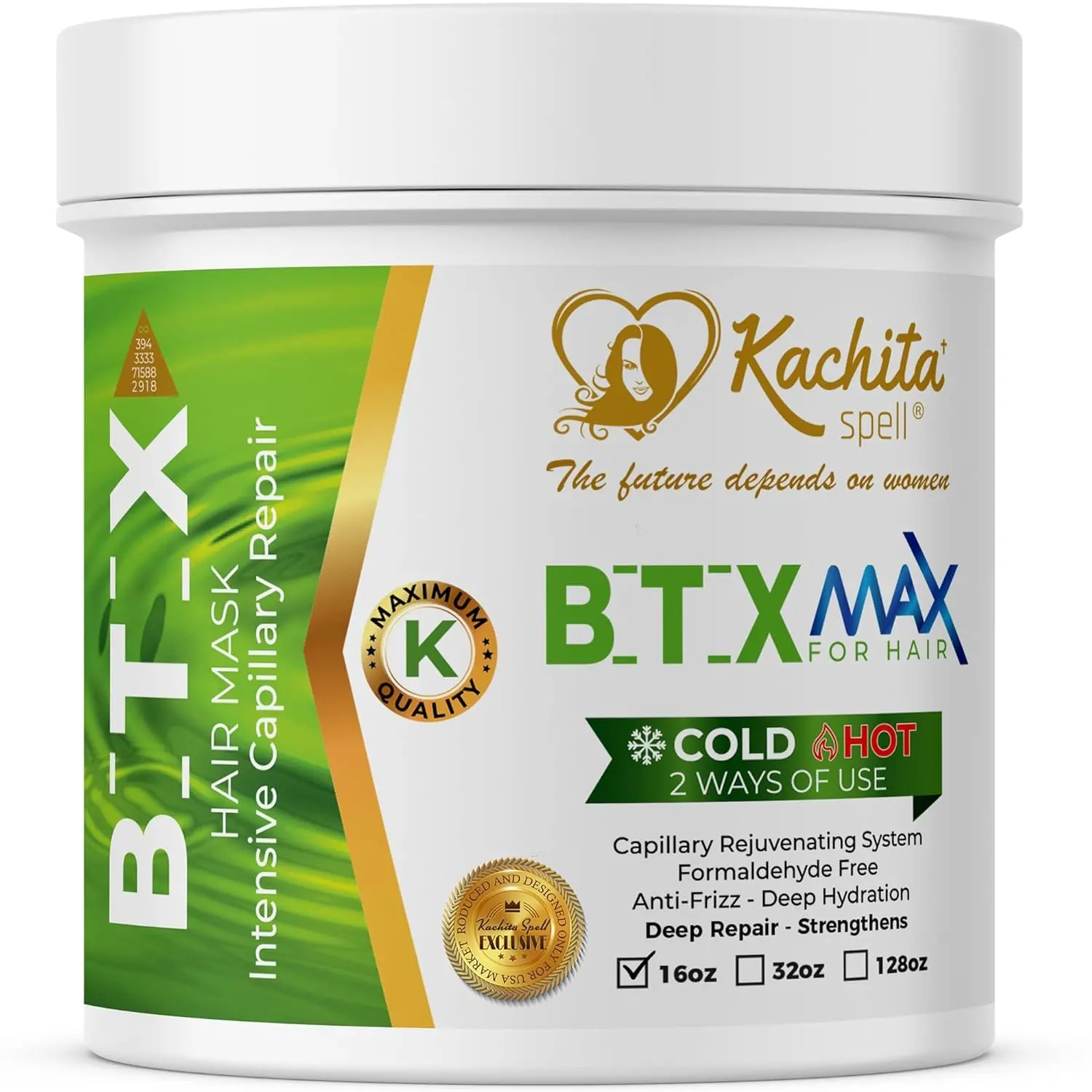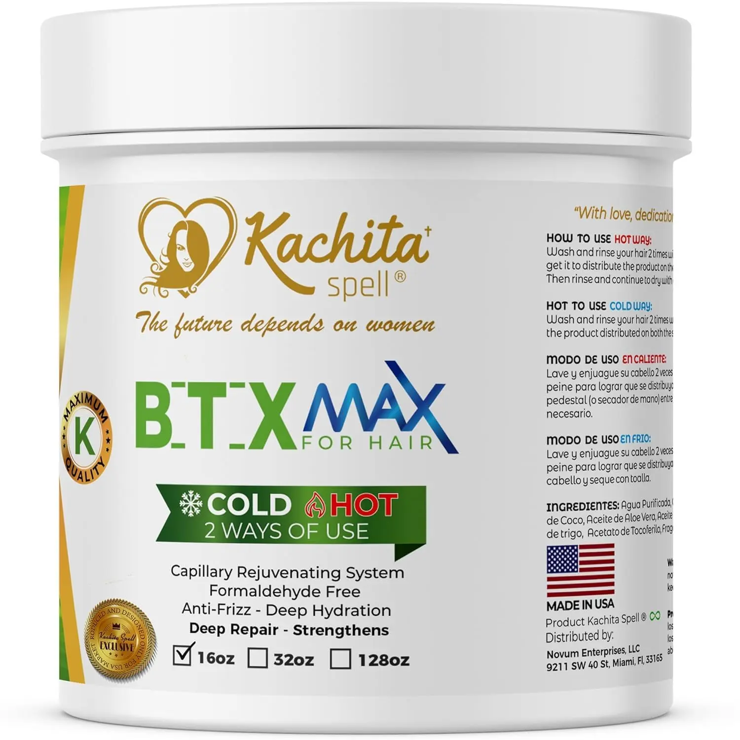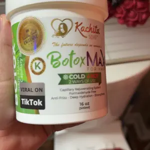 Kachita Spell BotoxMax 16 floz is the ultimate hair treatment to smooth, nourish, and rejuvenate hair from the very first application. Infused with healing ingredients like coconut oil, aloe vera, avocado oil, collagen, and keratin, BotoxMax repairs damaged hair fibers and leaves your hair soft, shiny, and frizz-free.