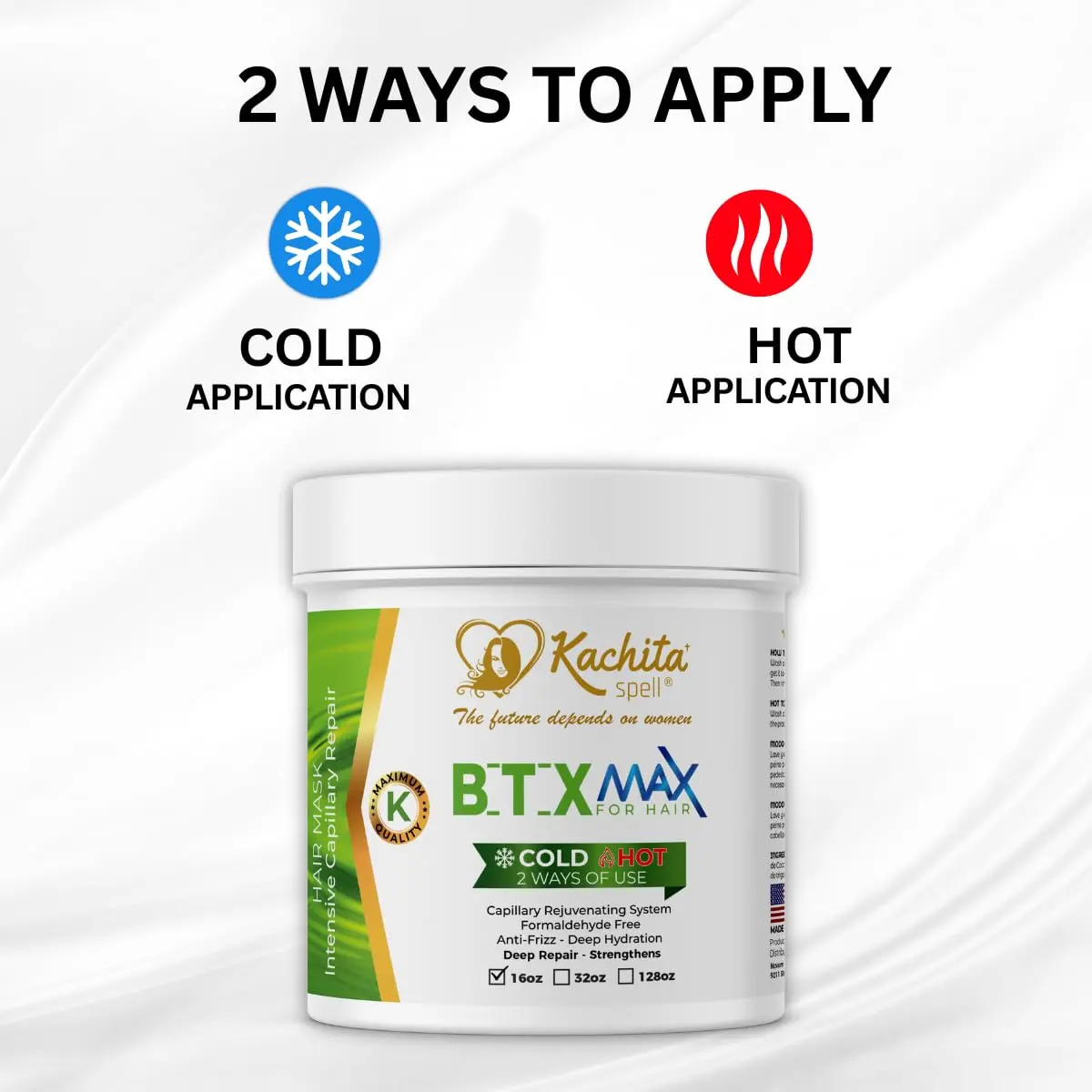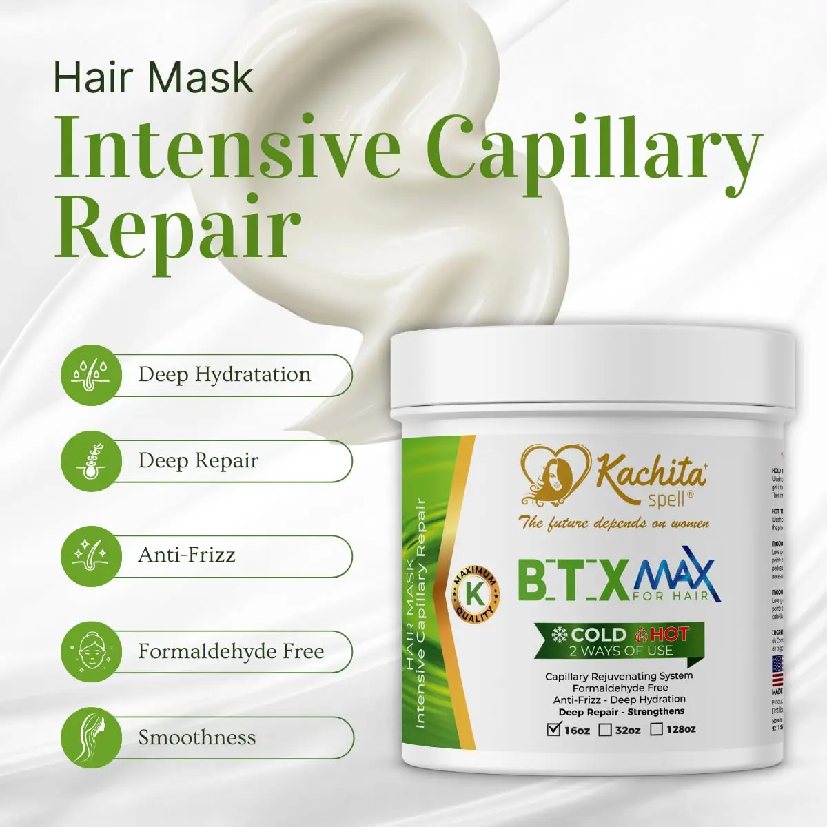 ·Advanced Formula: Provides deep hydration, nourishment, smoothness, and volume control without formaldehyde.