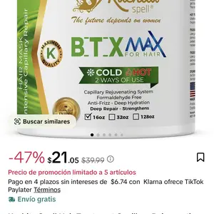 Don’t miss the chance to transform your hair with the restorative power of BotoxMax. Designed to deliver visible results from the first use, this treatment hydrates, nourishes, and revitalizes your hair, leaving it soft and with a spectacular shine. If you care about the quality and health of your hair, this is the product you need. Try BotoxMax and fall in love with your hair all over again!