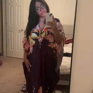 So comfy. Fits well even though it’s one size. Absolutely loveeee itttt. I am 5’3 and it falls past my ankle and has small slits at the bottom of it on both sides
