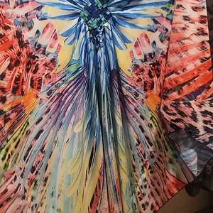 First let me say I have 5 different ones from this same company. They all are very light, flowy, silky soft, beautiful dresses I wear around the house but could wear out. They wash and dry well & fit nicely. This one however the image is awful, blurry, looks ai printed on so I wouldn't wear it out.