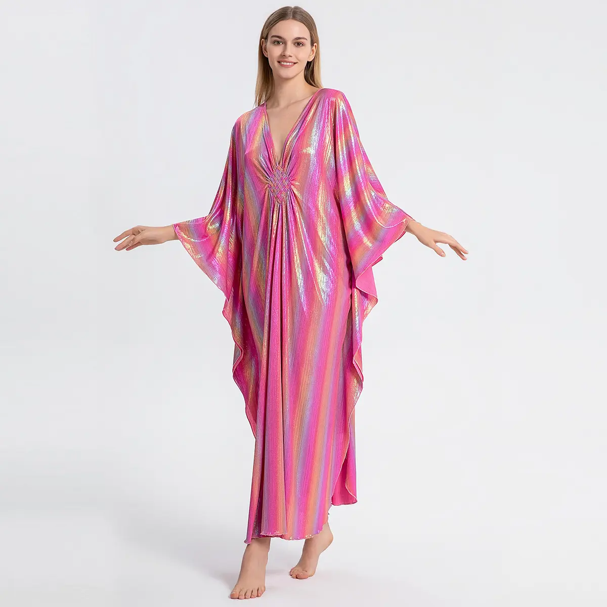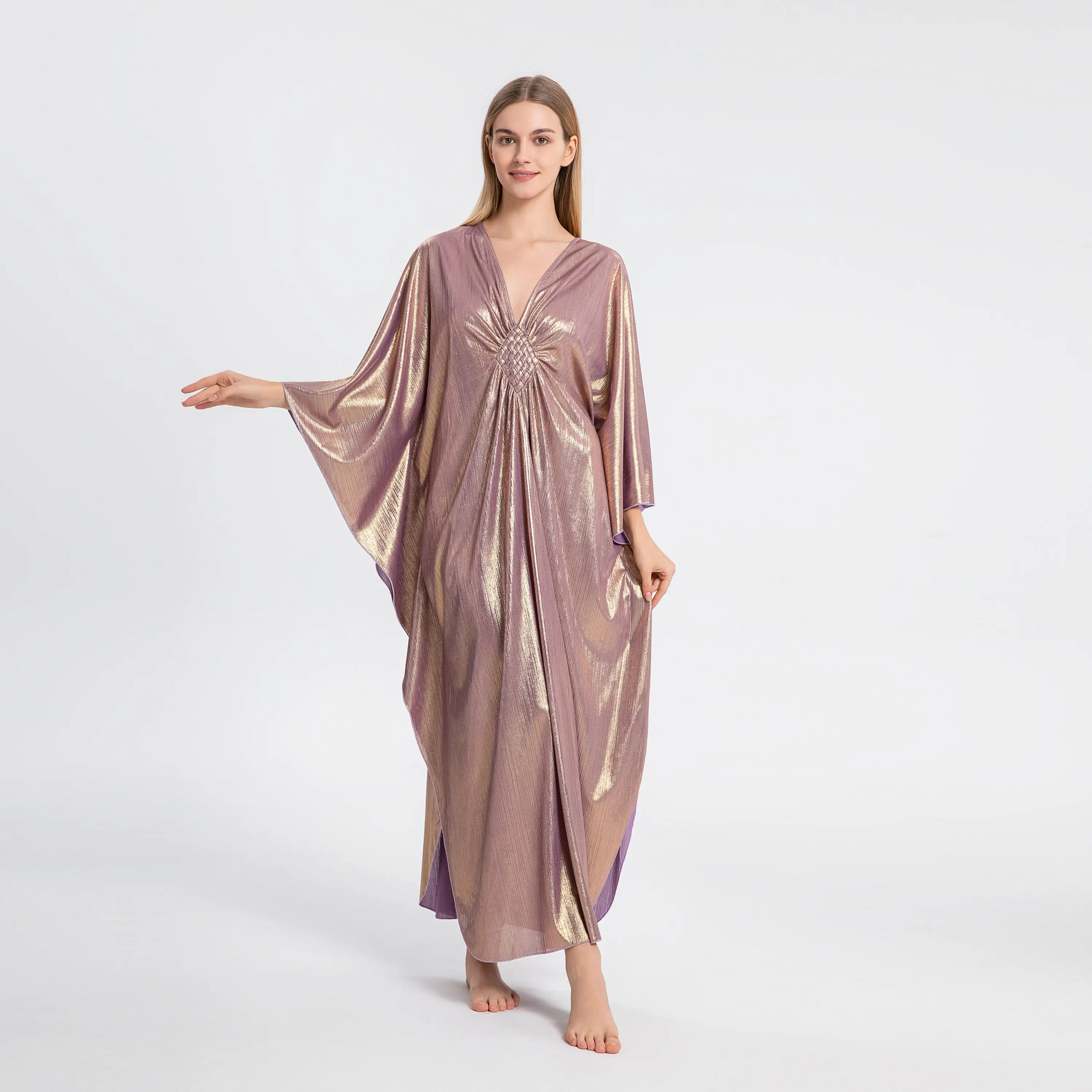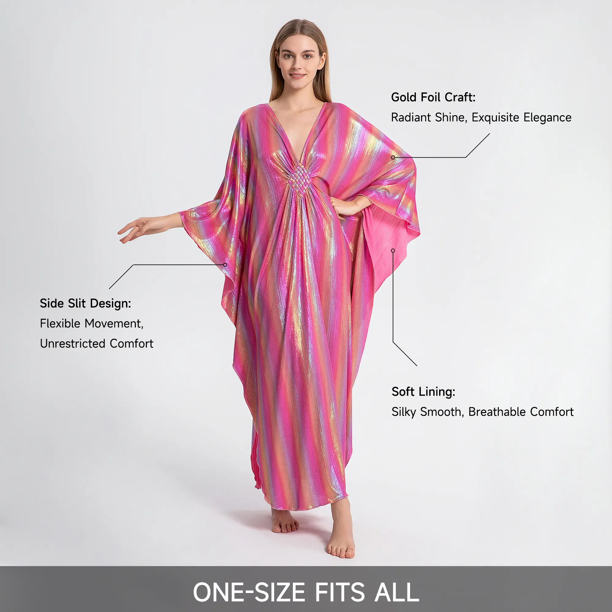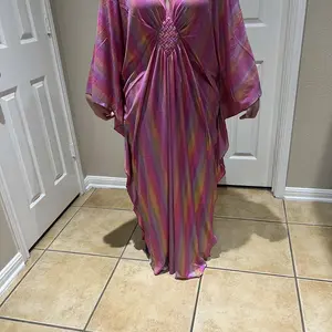 GORGEOUS, airy, comfortable, classy, and easy to wear. I have several other versions of this kaftan but so far, my shiny pink one is my favorite.