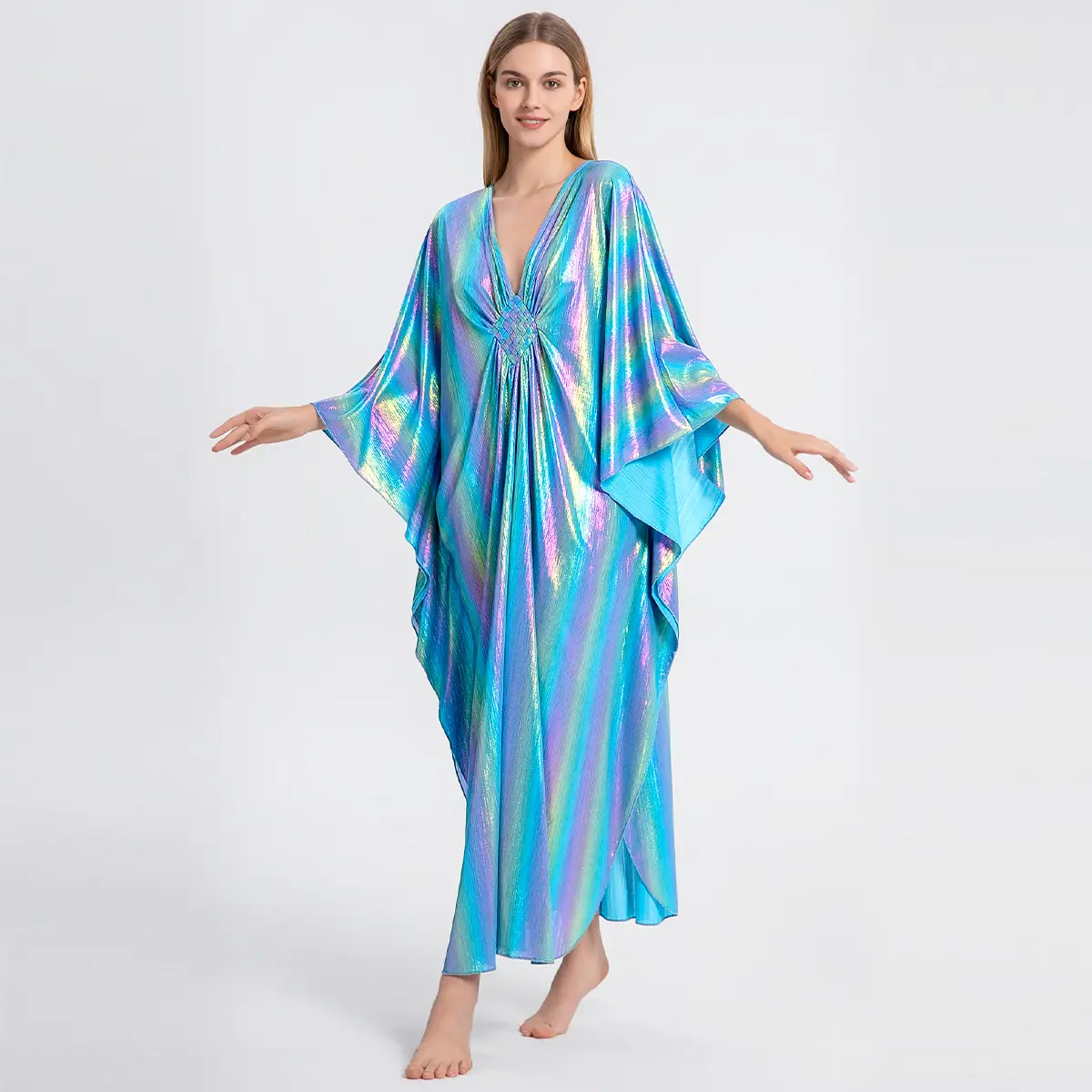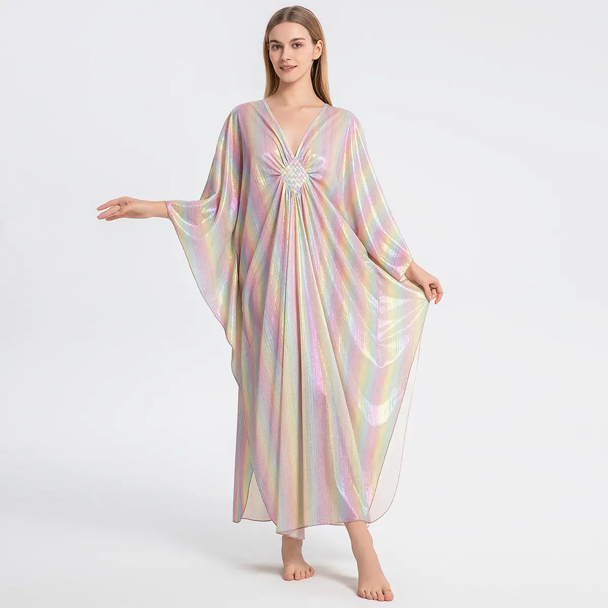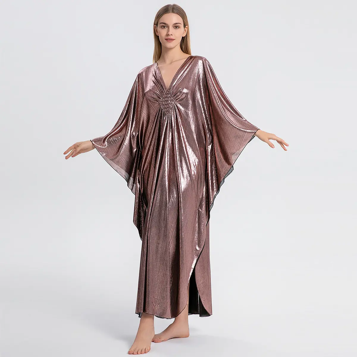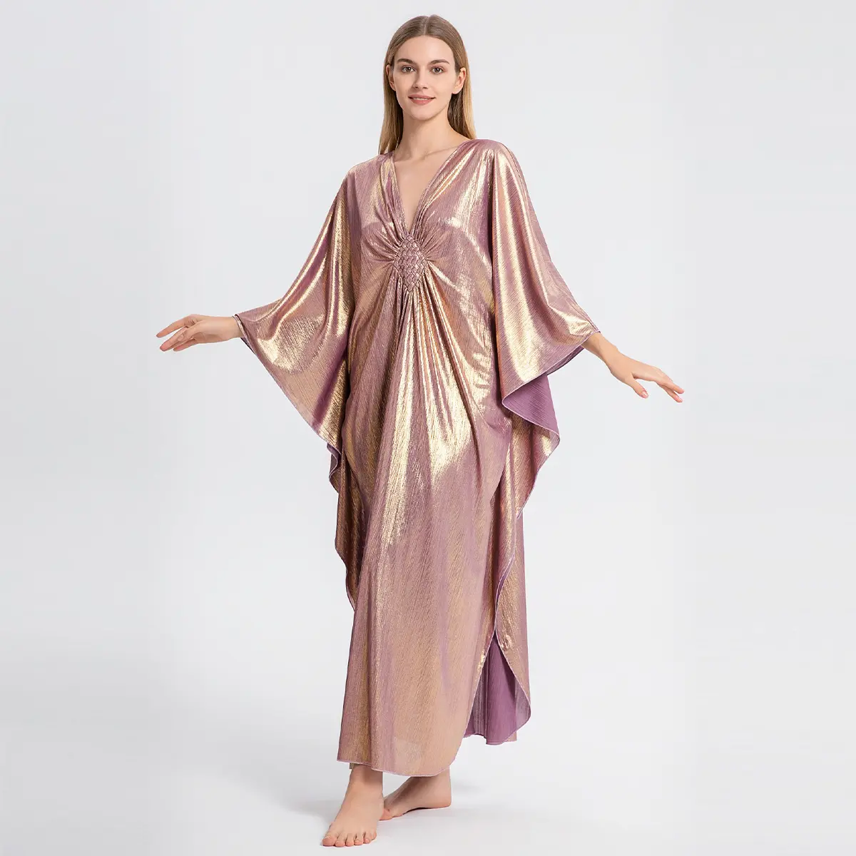GORGEOUS, airy, comfortable, classy, and easy to wear. I have several other versions of this kaftan but so far, my shiny pink one is my favorite.