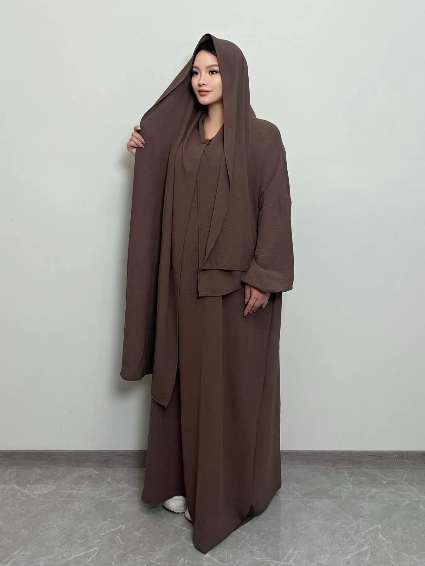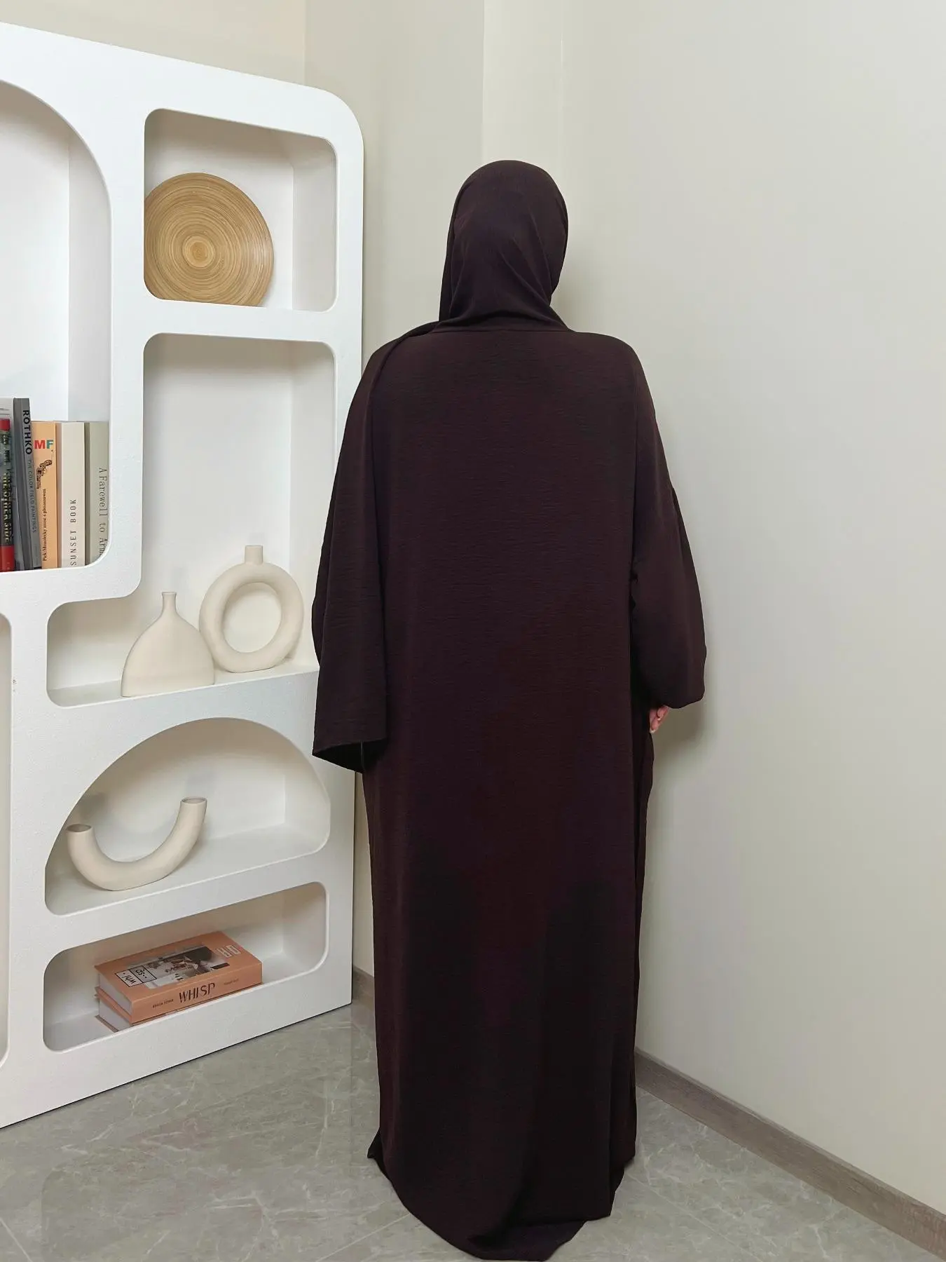 This chocolate brown abaya is absolutely gorgeous! The color is so rich and beautiful. I got so many compliments wearing this. The material is amazing. I’m 5’6 and size large was the perfect length on me.