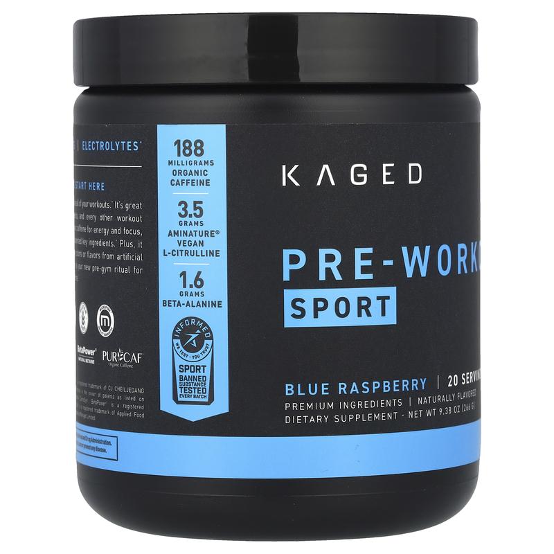 5. Kaged Pre-Workout, Sport, Blue Raspberry, 9.38 oz (266 g)