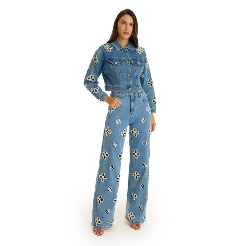 A romantic refresh of a classic - meet the Kaia Pearl Jean. Perfectly fitted through the waist and hips, these straight leg jeans are extremely flattering and designed with a luxurious stretch denim. All-over embroidered beaded flowers and pearls adorn this stunning style, making for a perfect statement from brunch to vacations.  This jean is true to size and flattering, you won't believe how great these fit.