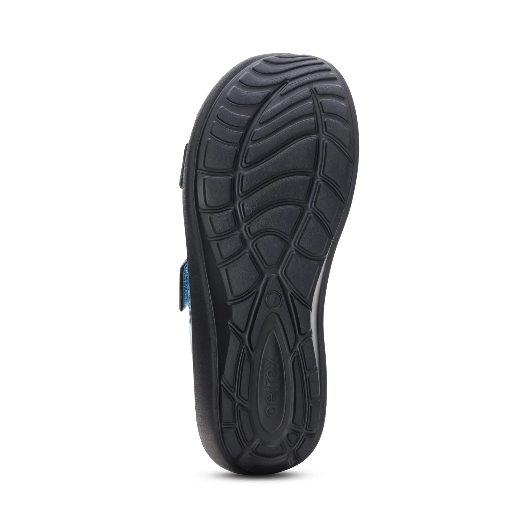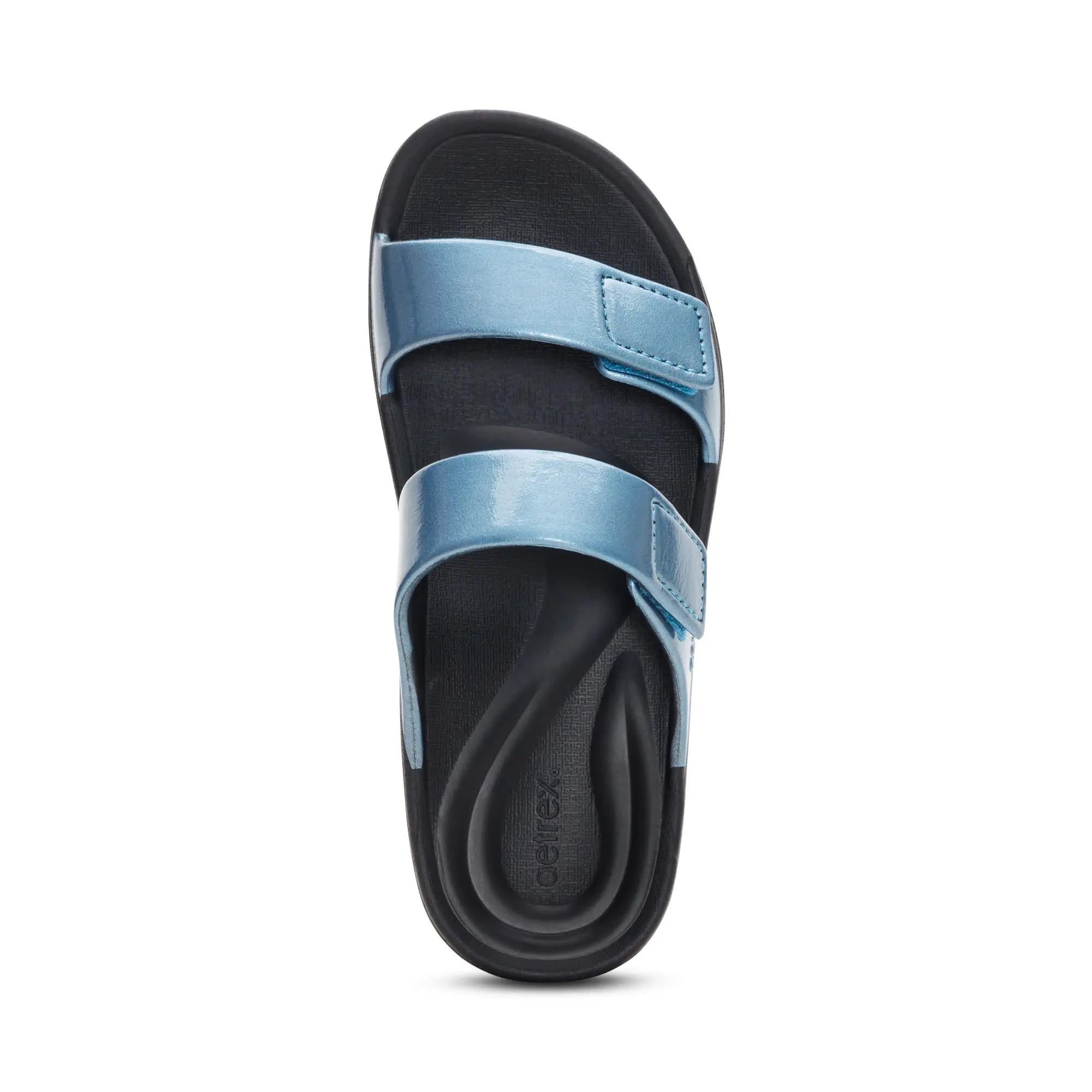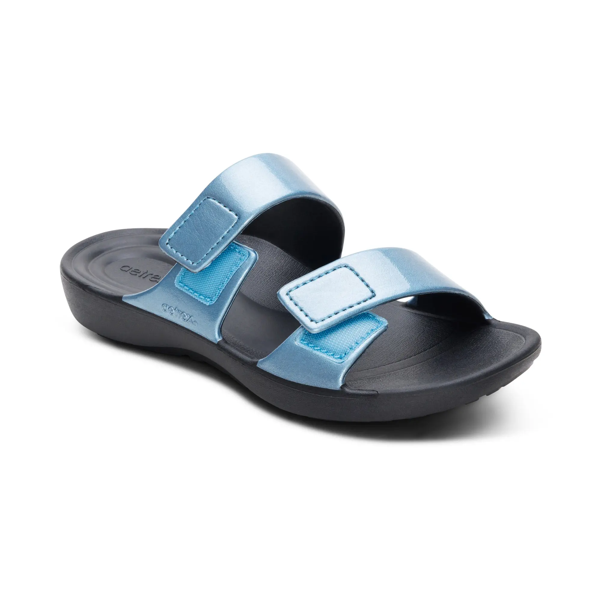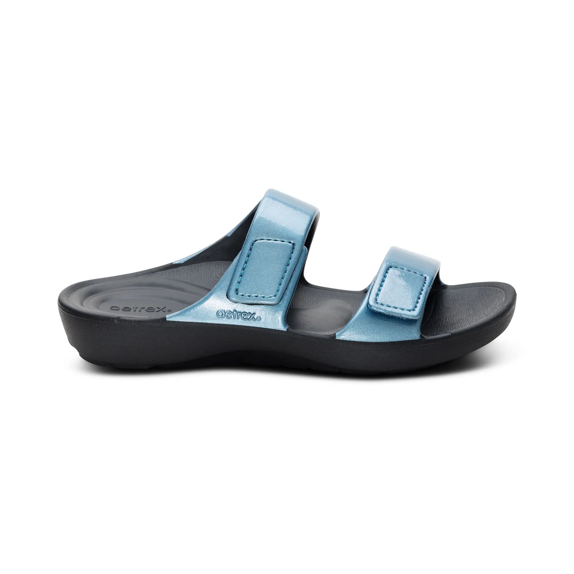 Embrace effortless style and exceptional comfort with the Kaia Slide. Crafted with Aetrex Orthotic technology, this chic slide offers optimal support, balance, and alignment. The UltraSky™ EVA material provides extra cushioning and durability, making every step feel like a dream. The Kaia ensures your feet stay comfortable all day long. The slightly raised heel and contoured footbed deliver a modern, sleek look, while the design makes them perfect for any summer activity. Each Aetrex shoe is anatomically designed based on data and learnings from over 50 million global foot scans. This ensures you’re getting the best fit for your feet and premium support for your body from the ground up.