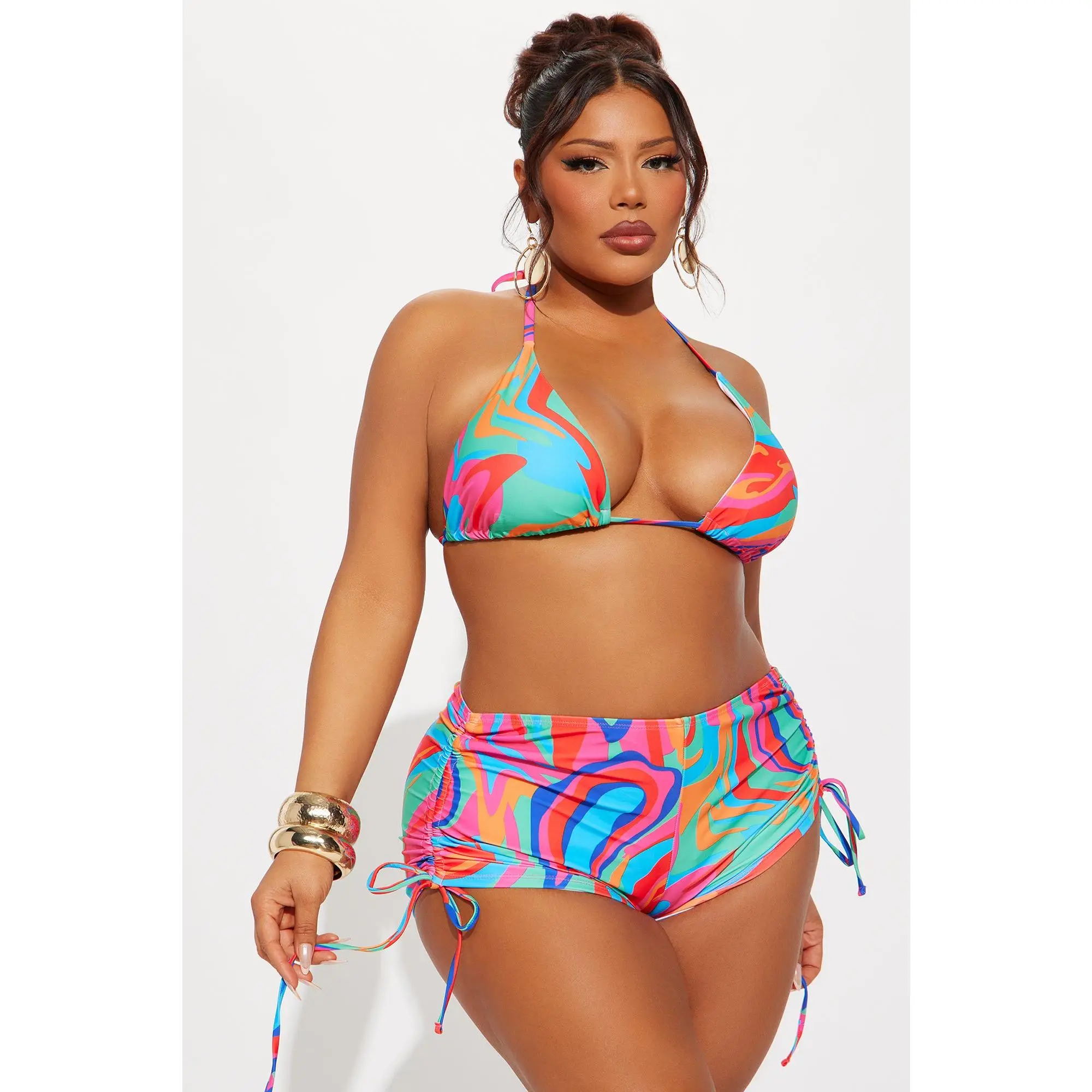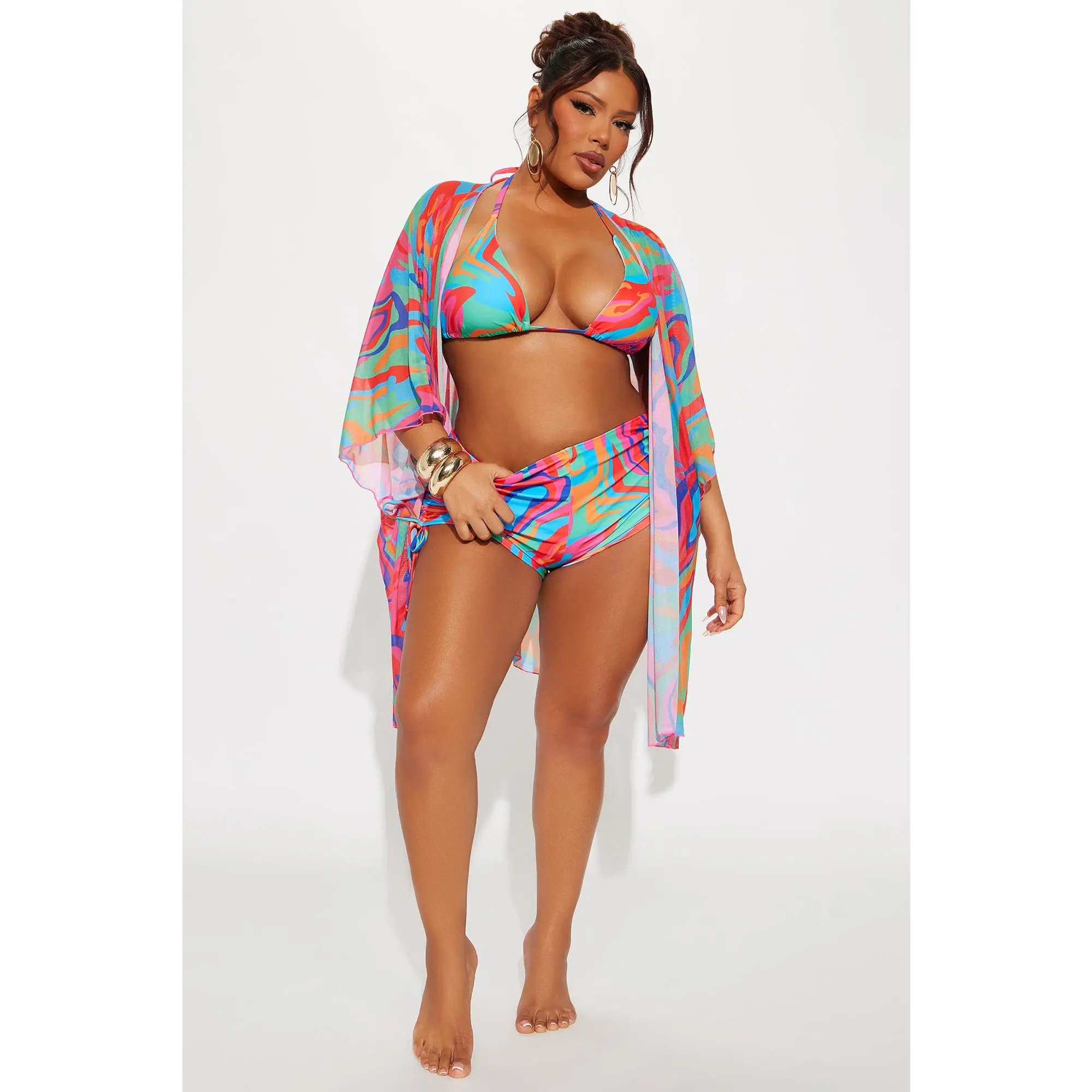 Kairi Ruched Boyshort & Kimono 3 Piece Bikini Set - Multi Color ❤️🧡💙💚✨size 2xl - sold by @Fashion Nova #plussize #bikini #swimwear
