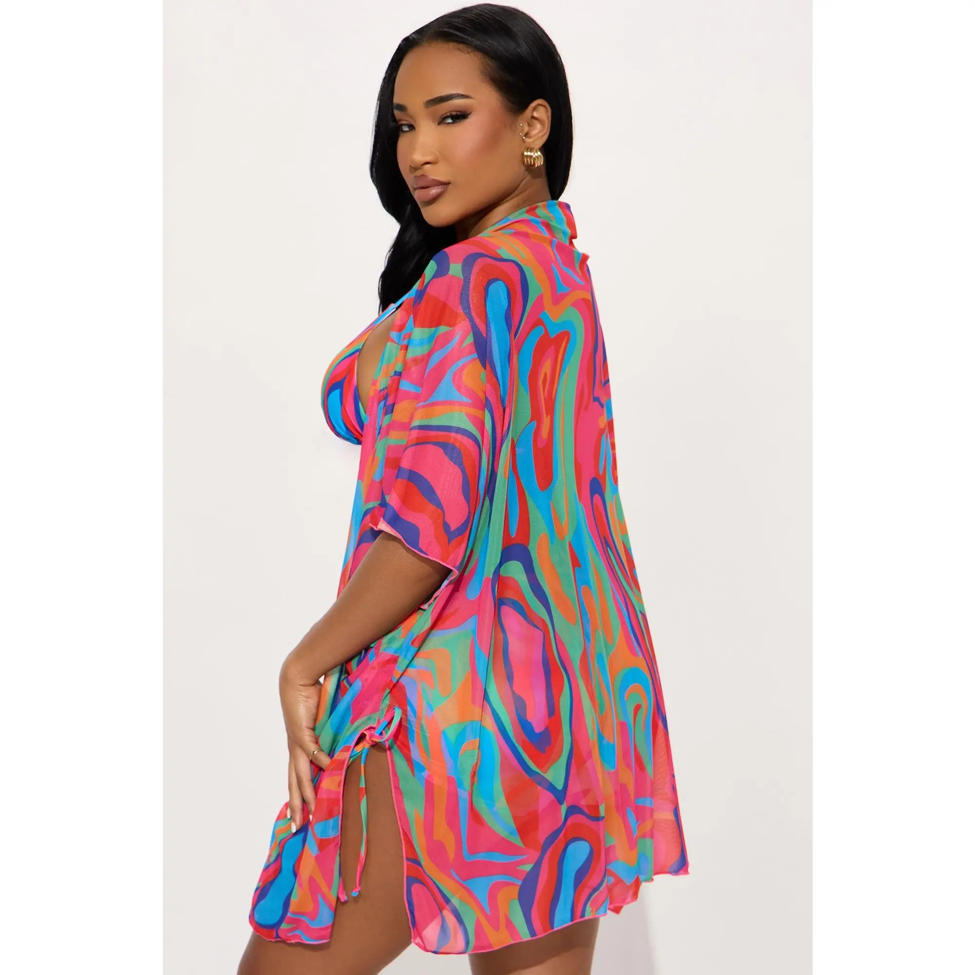 Kairi Ruched Boyshort & Kimono 3 Piece Bikini Set - Multi Color