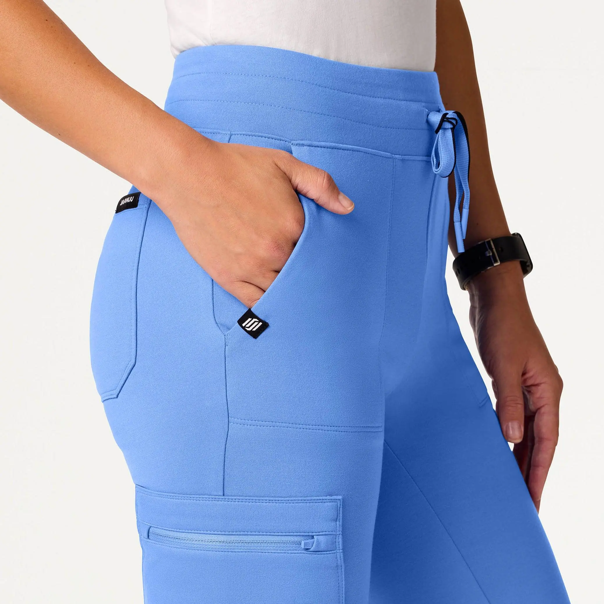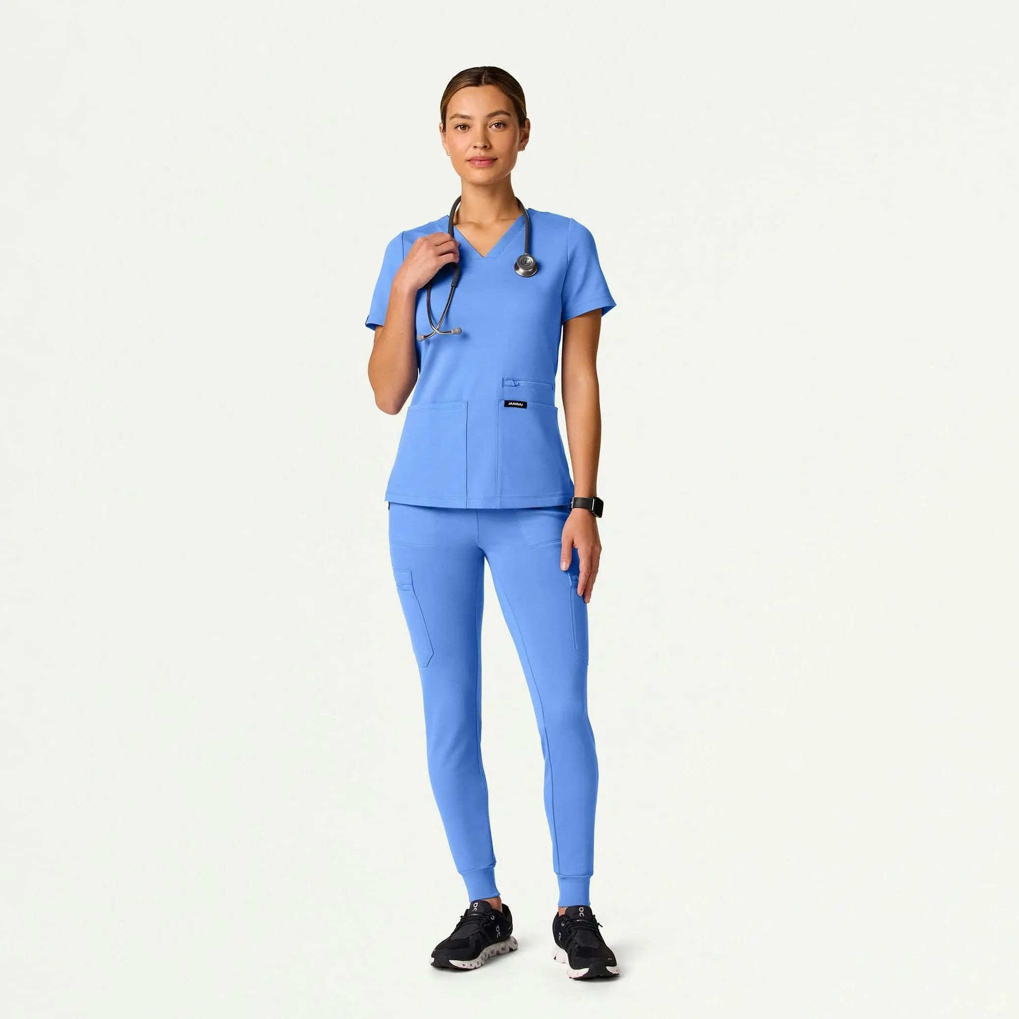 Maximum stretch meets maximum storage. Designed with a flat, banded drawcord for reduced bulk. This style pairs best with JAANUU UltraSOFT™ scrub tops.