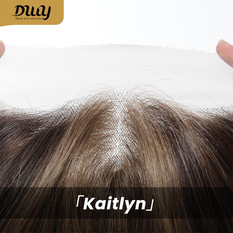 Kaitlyn C-NEW!! DWY 13x4 Lace Front Free Part Linen Brown with Highlights Hand-Tied Top Middle Length Glueless Synthetic Wig for Women 22 Inches Natural Hairline