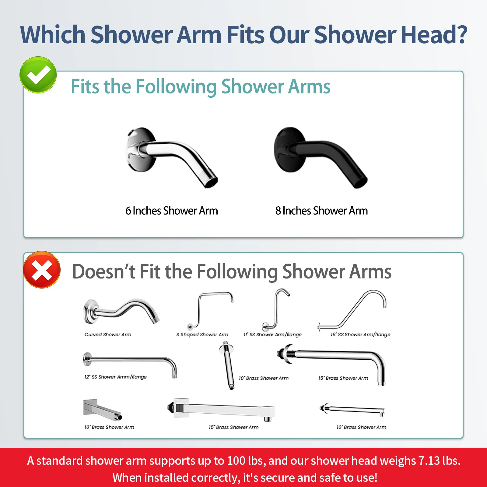 SHOWER ARM and VALVE KIT are not included, so you can choose according to your bathroom's needs.
