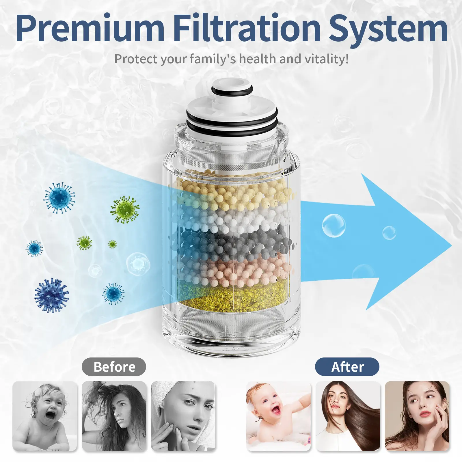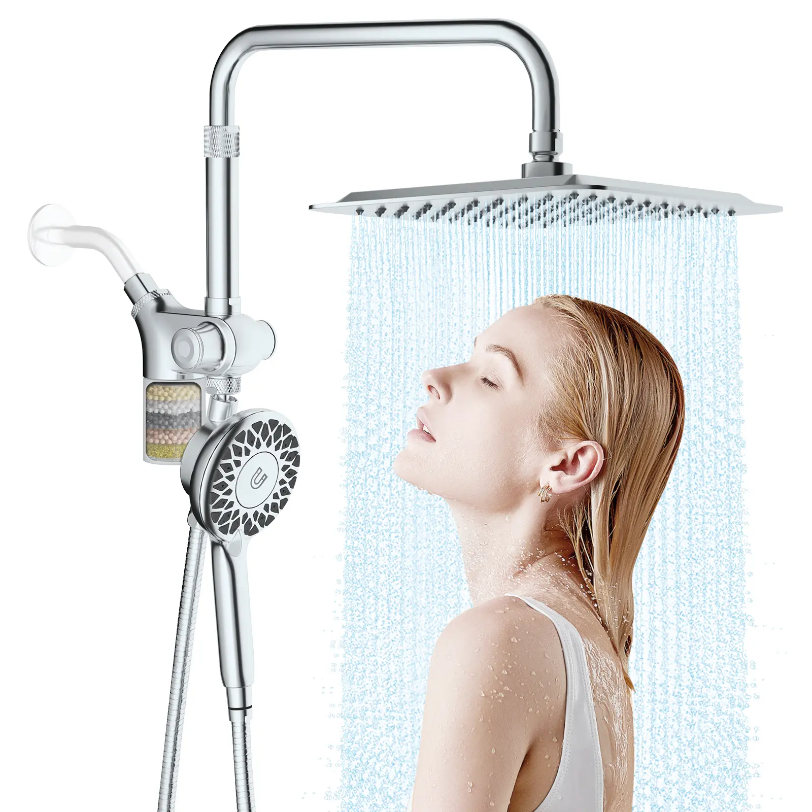 ·【Integrated Filtration System】- The luxury shower heads with handheld spray combo features an integrated filtration system, including VC balls, maifanite, magnetic balls, calcium sulfite, and KDF copper powder. This filters out impurities and scale for a clean shower experience. This integrated design eliminates the cost of purchasing and maintaining additional filters. The general advice is to replace the filter cartridge every 3-6 months, which depending on your home's water quality.
