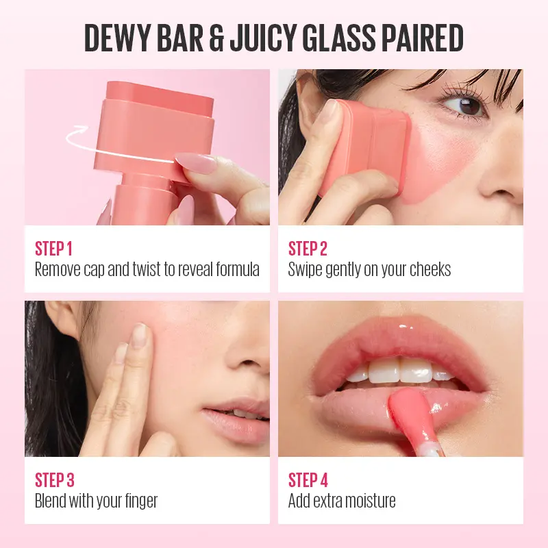 Experience ease of a 2-in-1 Dewy Bar product that adds color to your lips and imparts a healthy glow to your cheeks with a simple swipe and blend. Dewy Bar is a multi-product, but not recommended for use around the eyes.