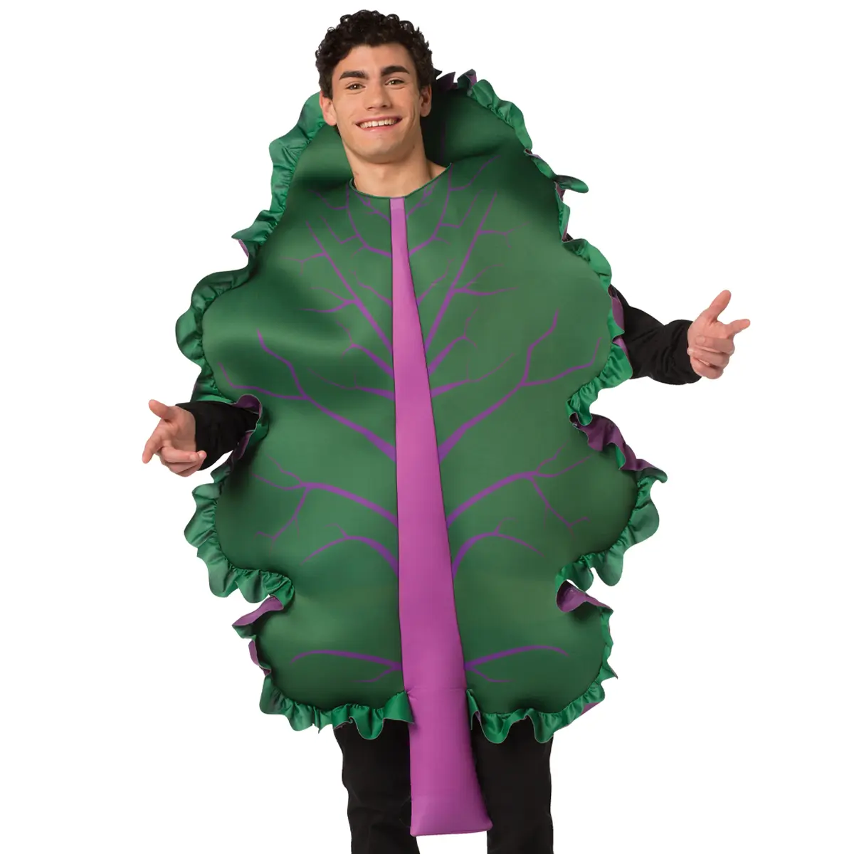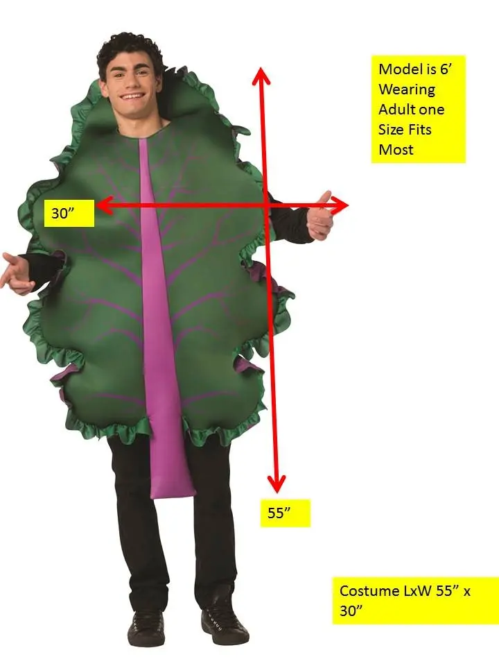 Don't let anyone "kale" your vibe when you walk into the next Halloween party or event! Show your friends you mean what you say about your new healthy lifestyle with this great new Kale Halloween costume! One piece tunic and one size fits most adults. Printed on the front with satin trim.