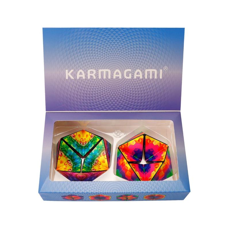 Unveil the magic of endless flips and transformations that will captivate both kids and adults alike.Karmagami Gift Set Features:Set includes 1 Boho & 1 Pixels styleCalming sensory toy setFlips infinitelyFour colorful designs in OneAges 4+ Dimensions: 3.7 x 3.7 x 1.57 inches Weight: 3.17 ounces