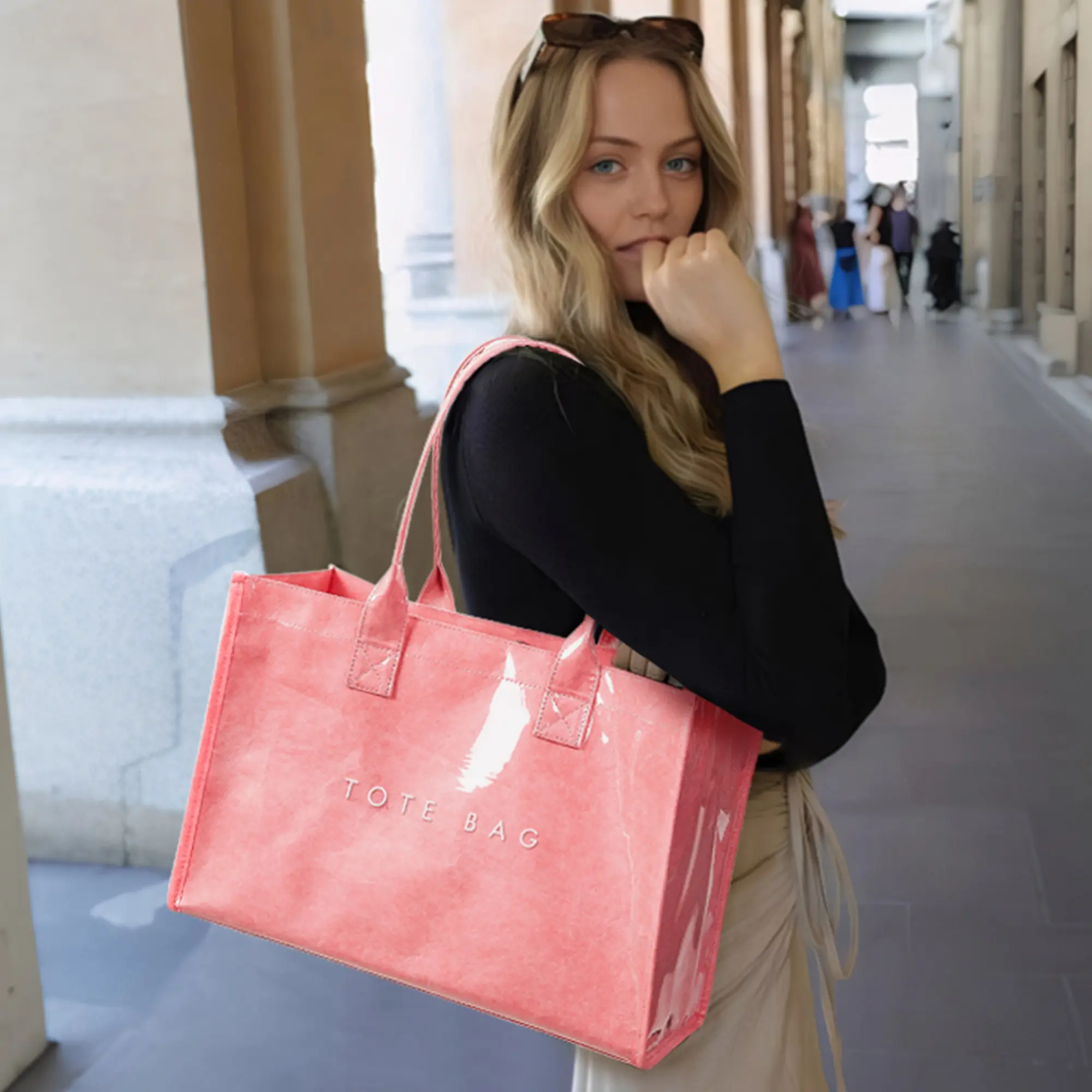 ·Trendsetting Material Combo : Elevate your style with our PVC kraft paper tote. The transparent PVC exterior reveals the minimalist kraft paper texture inside, creating a unique urban-chic look.