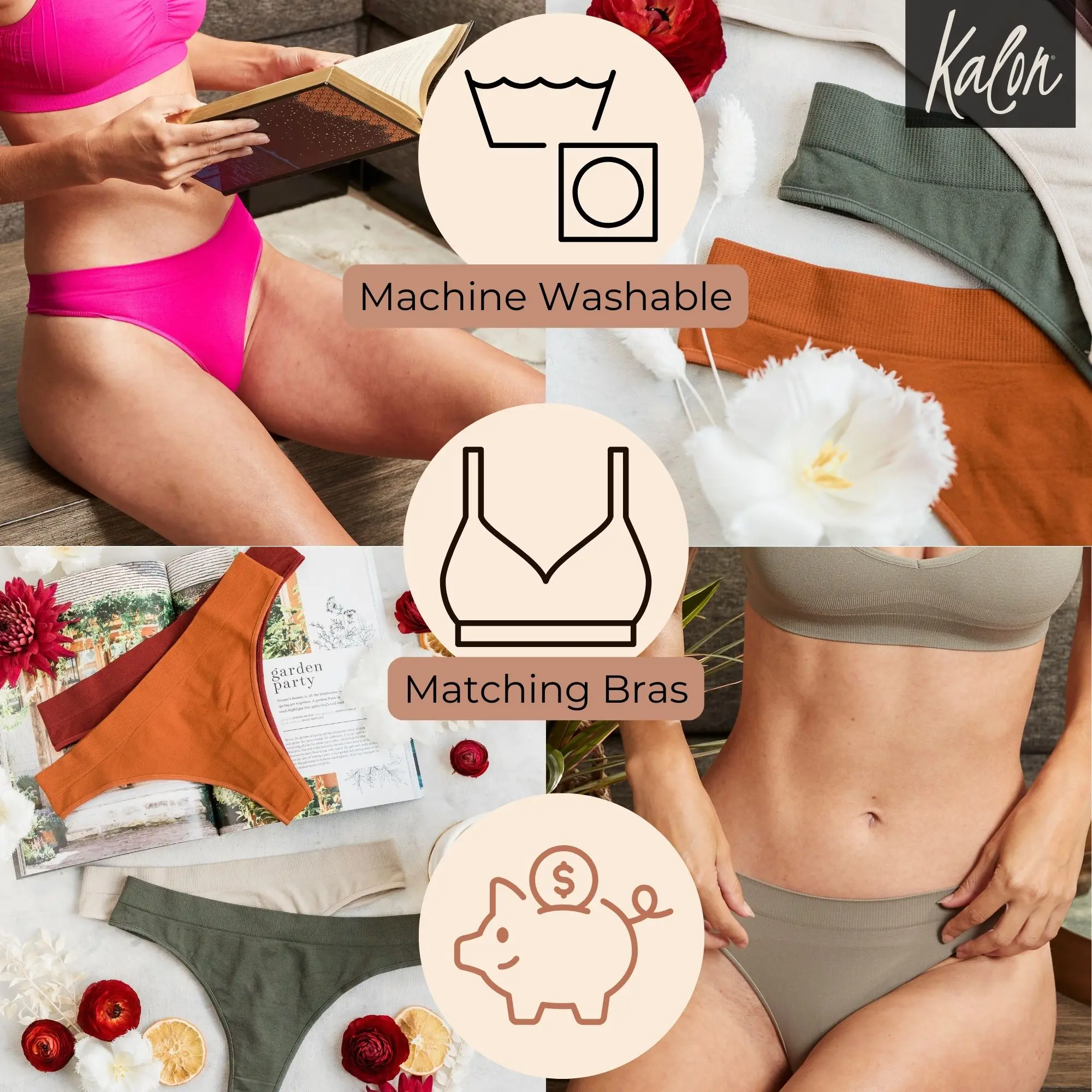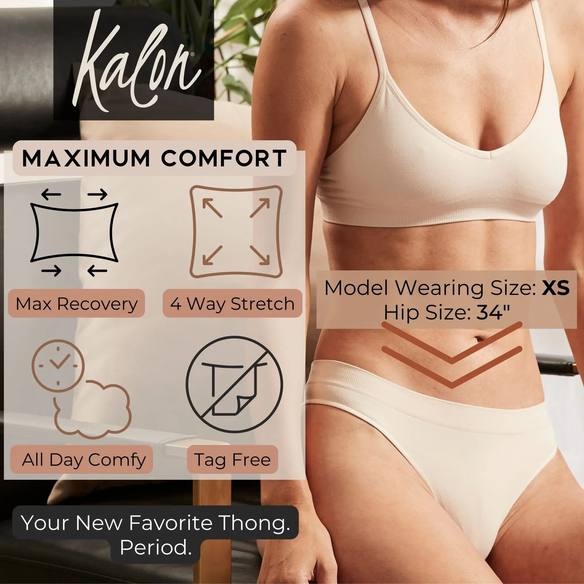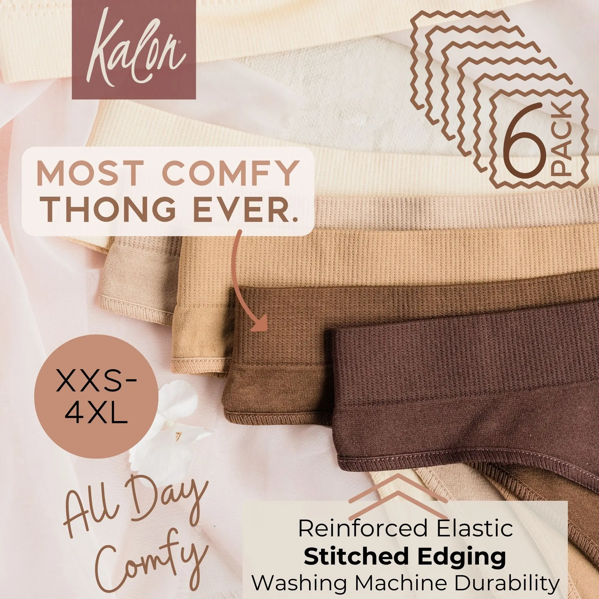 5. Kalon 6-Pack Women's Seamless Thong Underwear XS-4XL Stretchy & Comfy Knit Womenswear Soft Comfort Gym Panties Lady undies