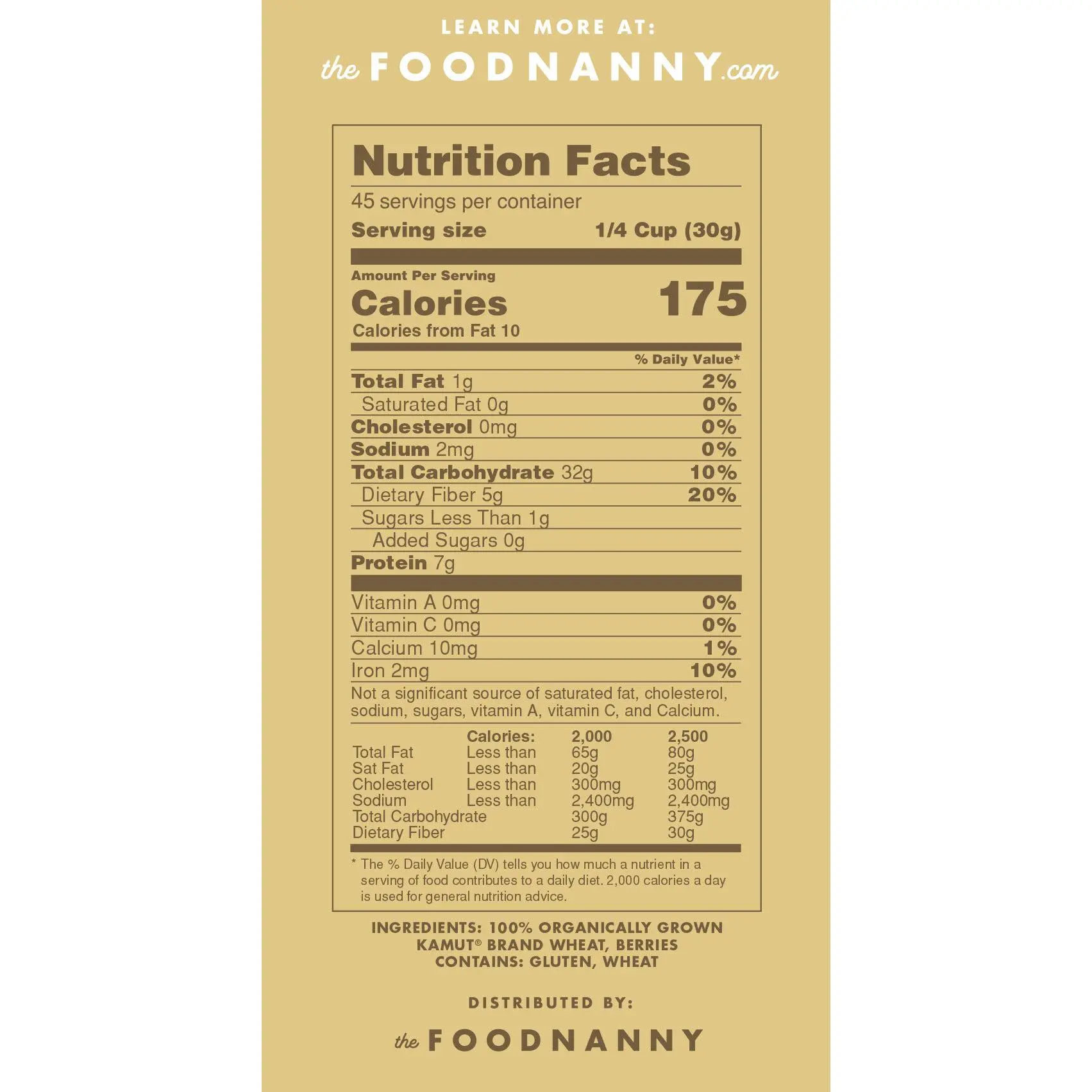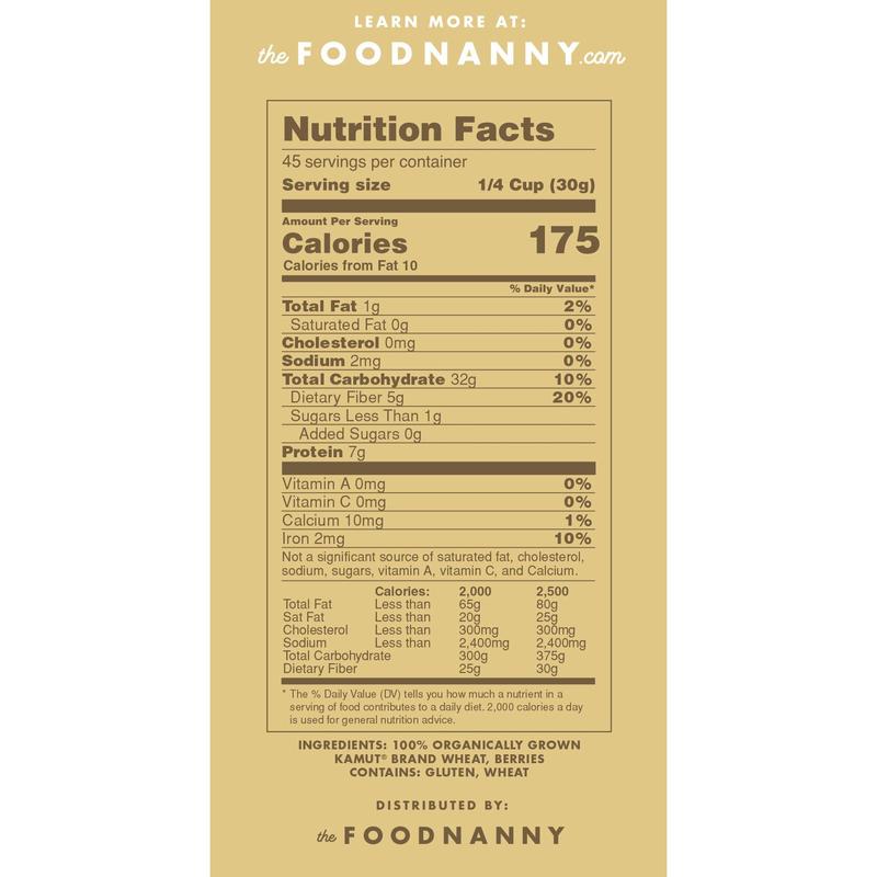 Ingredients100% Organically Grown Kamut Brand Wheat Berries