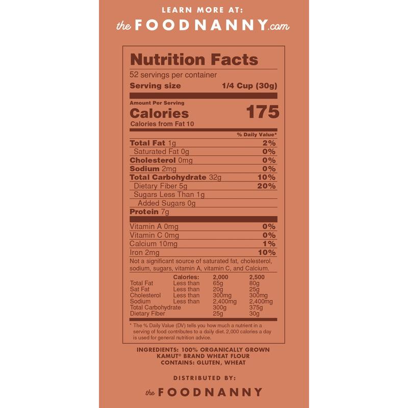 ·High Protein: Kamut flour contains more protein than than typical wheat flours