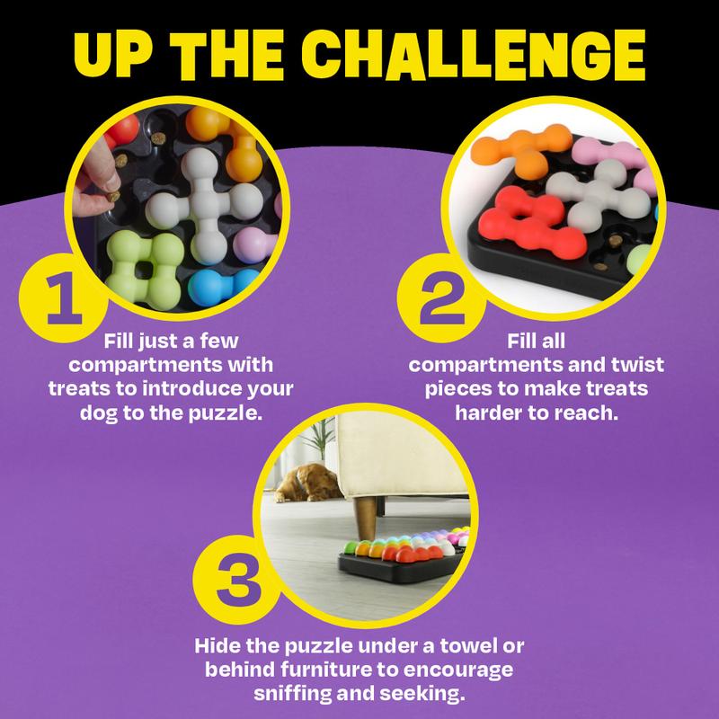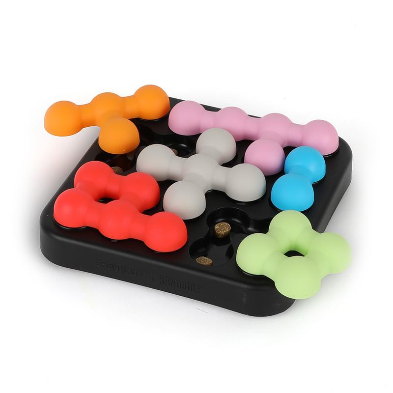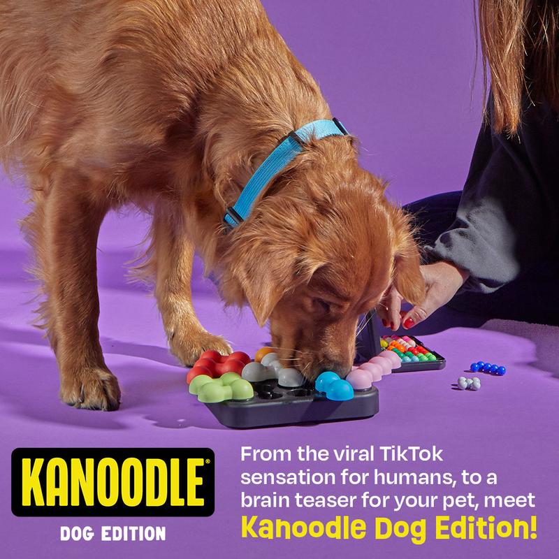 ·This interactive dog treat puzzle is inspired by our TikTok viral sensation, Kanoodle! Bringing the excitement of best-selling Kanoodle to your pet, this puzzle features a Kanoodle base and pet-safe Kanoodle pieces that twist and slide, each hiding your treats inside! Kanoodle Dog Edition can be customized to different challenge levels featuring nine built in treat compartments for extra stimulation and engagement.
