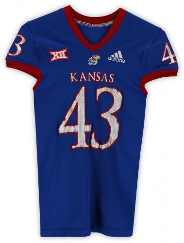 Kansas Jayhawks Team-Issued #43 Blue Jersey from the 2018-21 NCAA Football Seasons - Size L If a product is unsigned or non game-used, a hologram will not be included memorabilia. Kansas Jayhawks memorabilia.